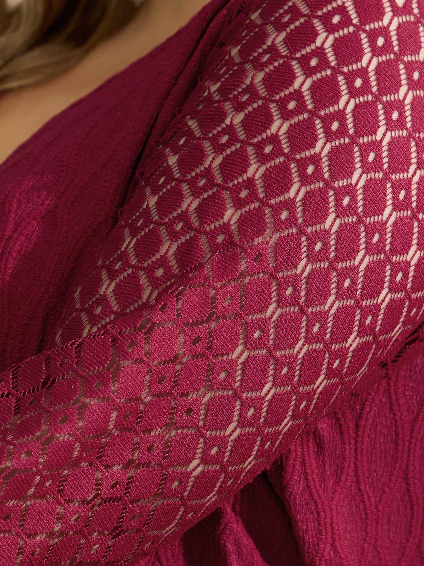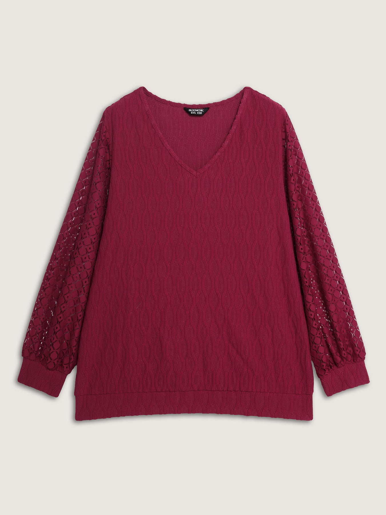 Sheer Textured Sleeve Stretchy Knit Top