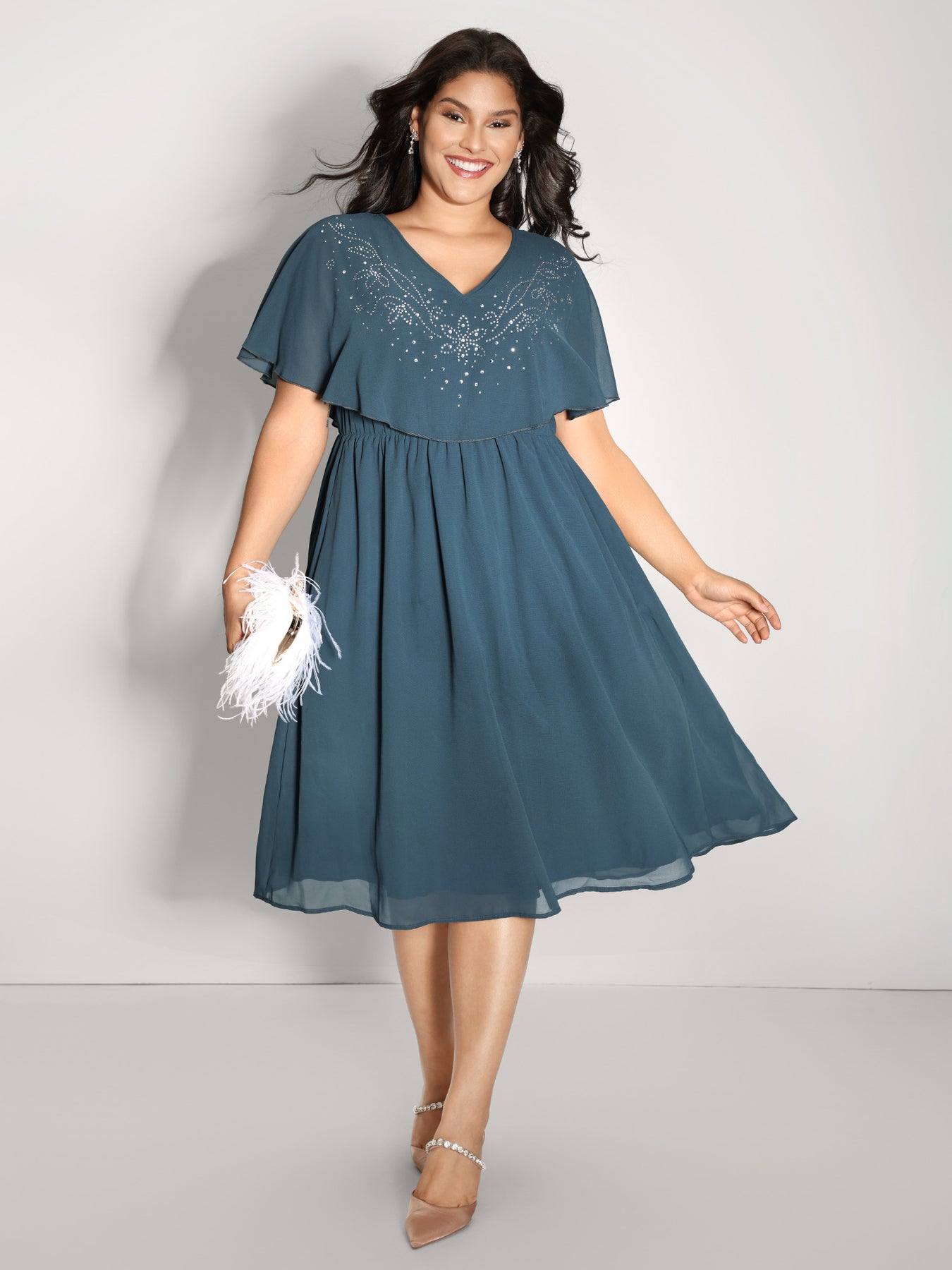 Shimmery Hotfix Rhinestone Layered Midi Dress