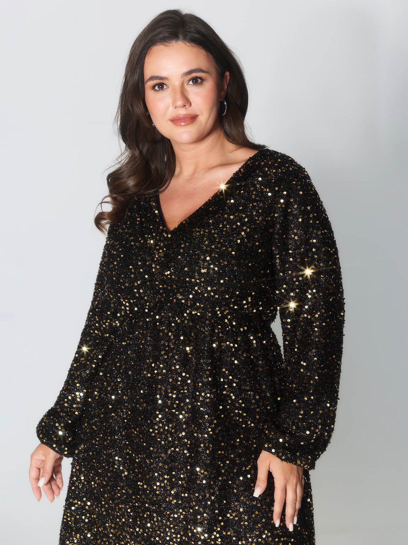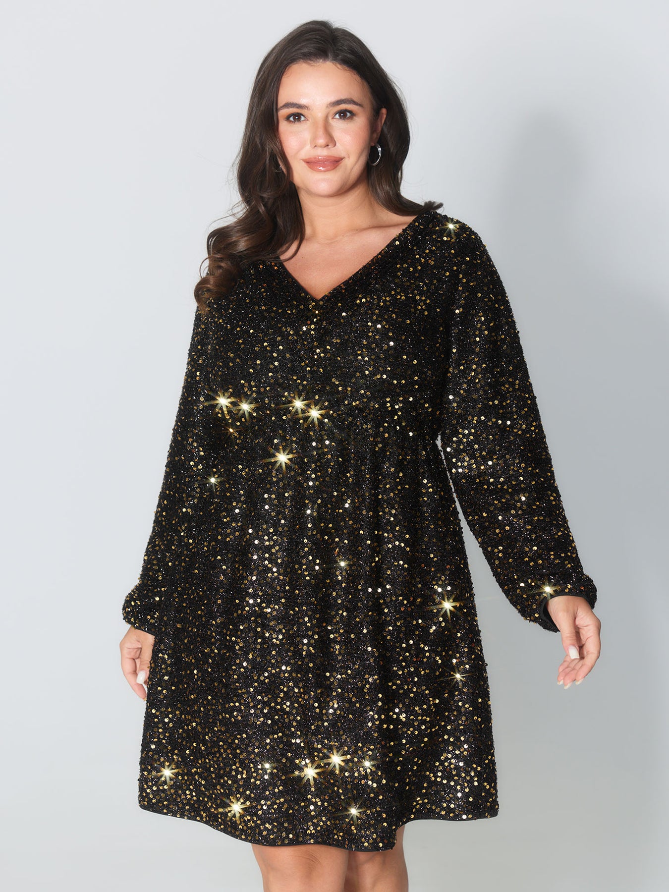 Shimmery Sequin V-Neck Knee Dress
