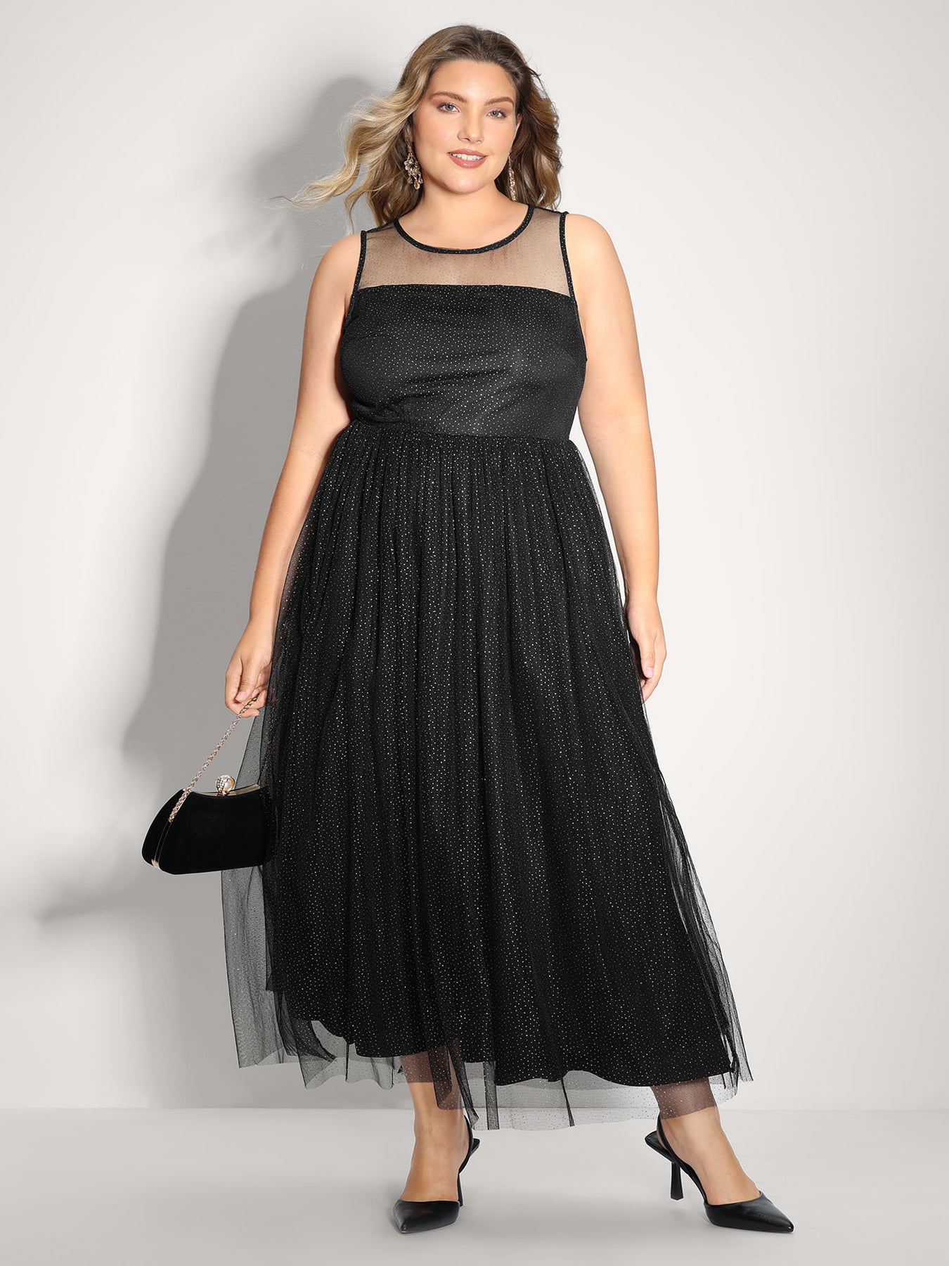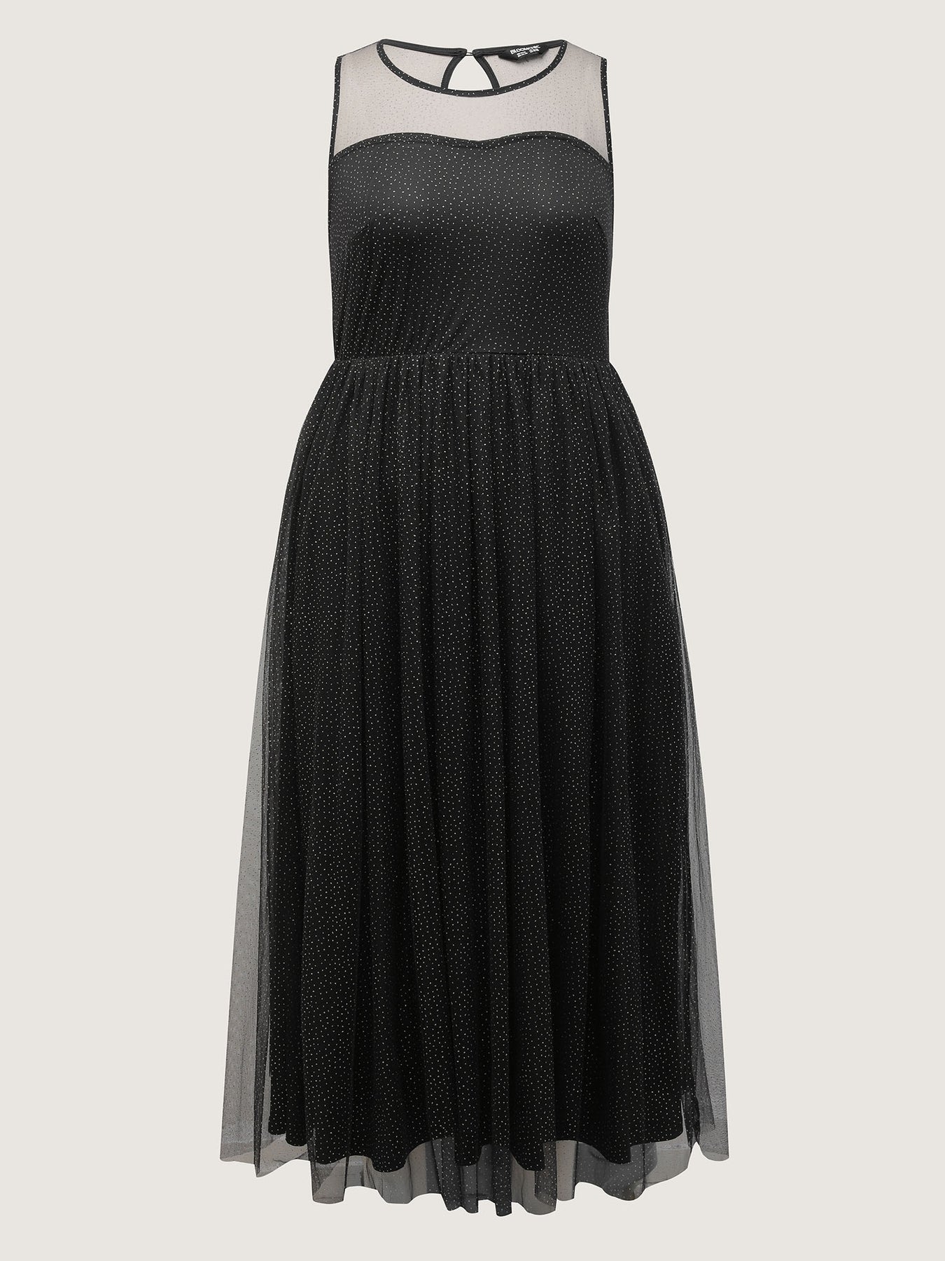 Shimmery Sheer Neckline Flowy Maxi Dress