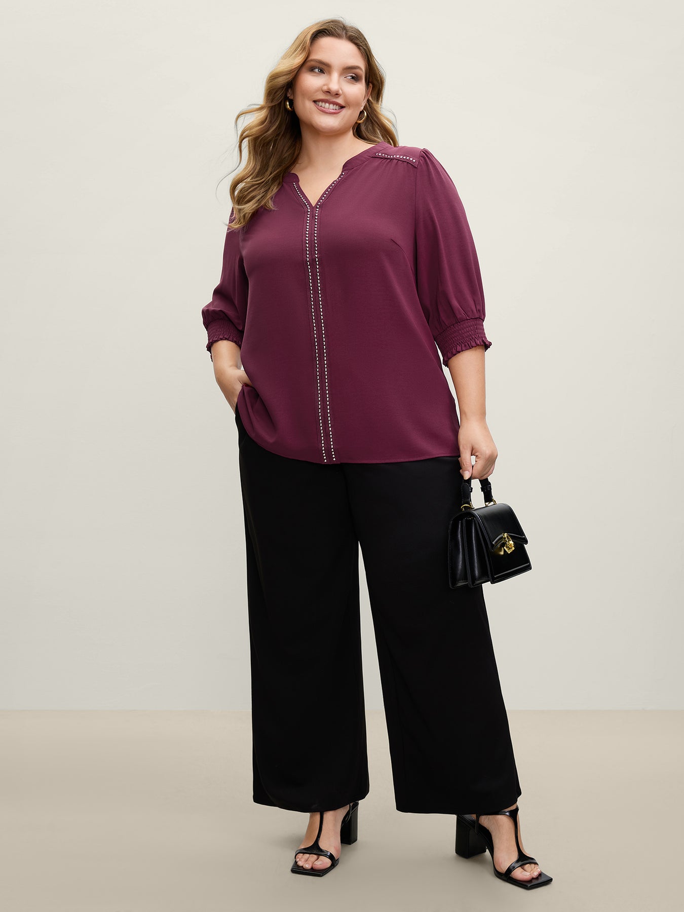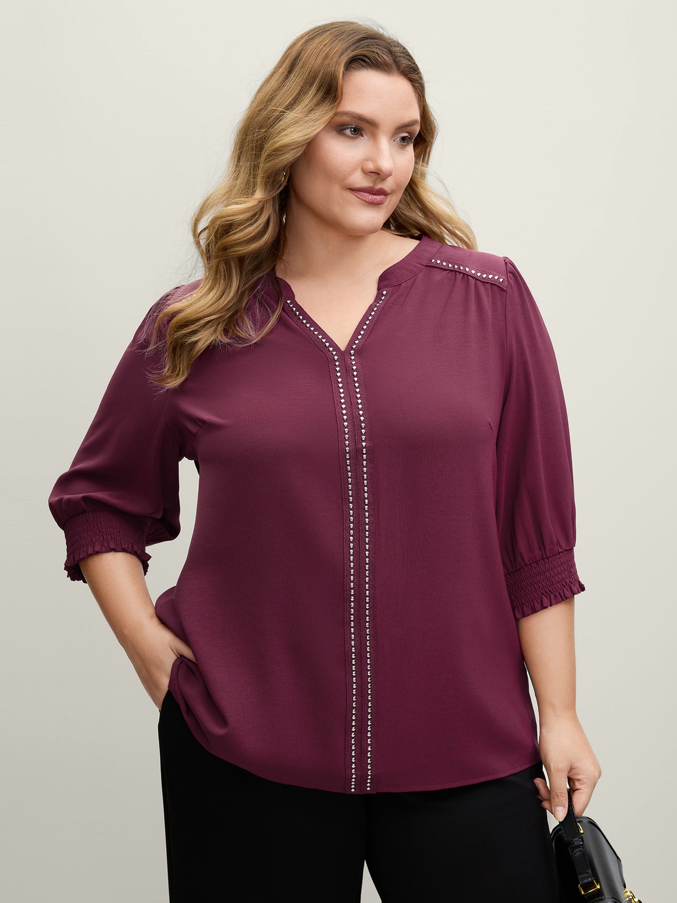 Shirred Cuffs Contrast Metallic Detail Blouse