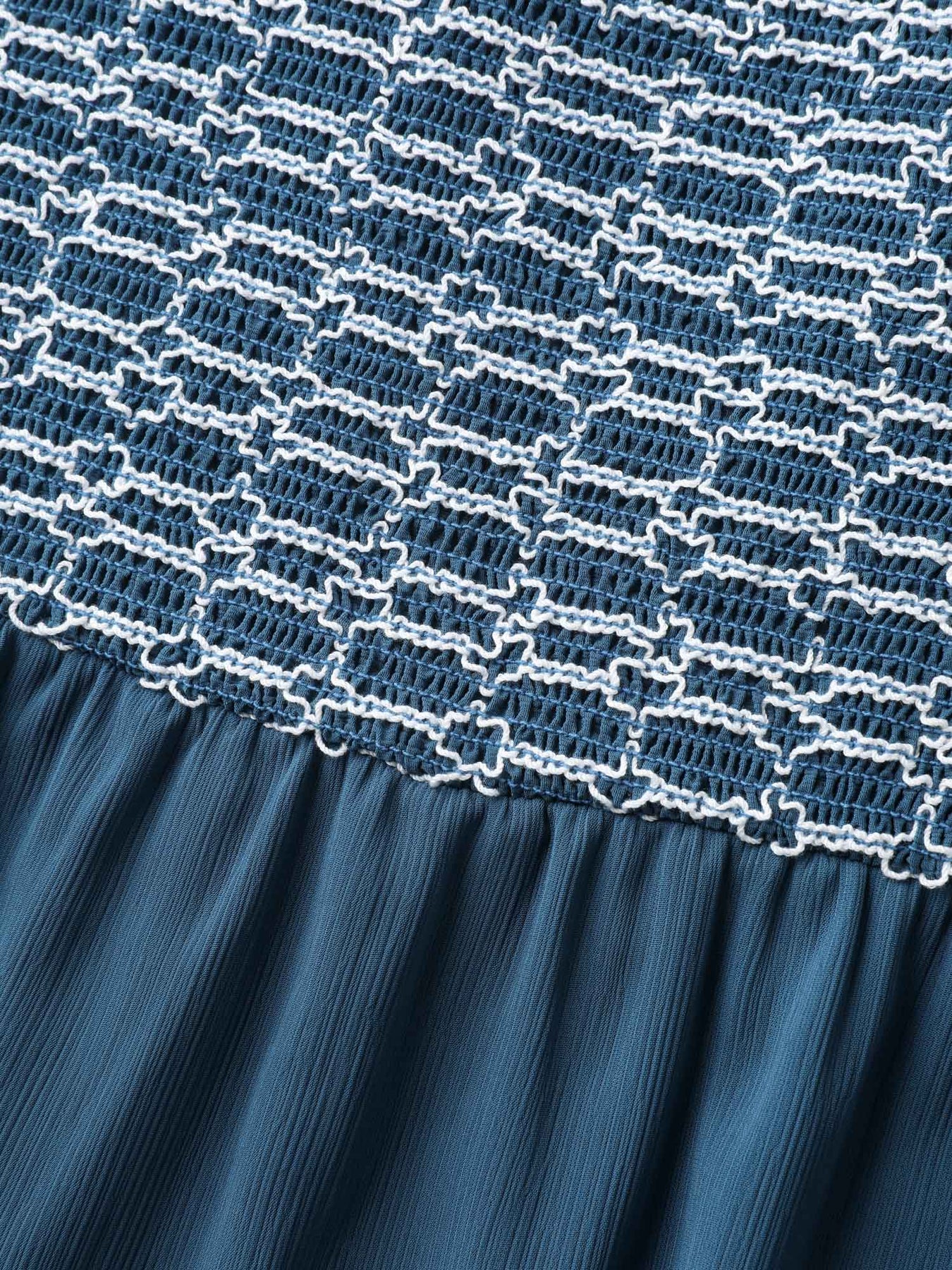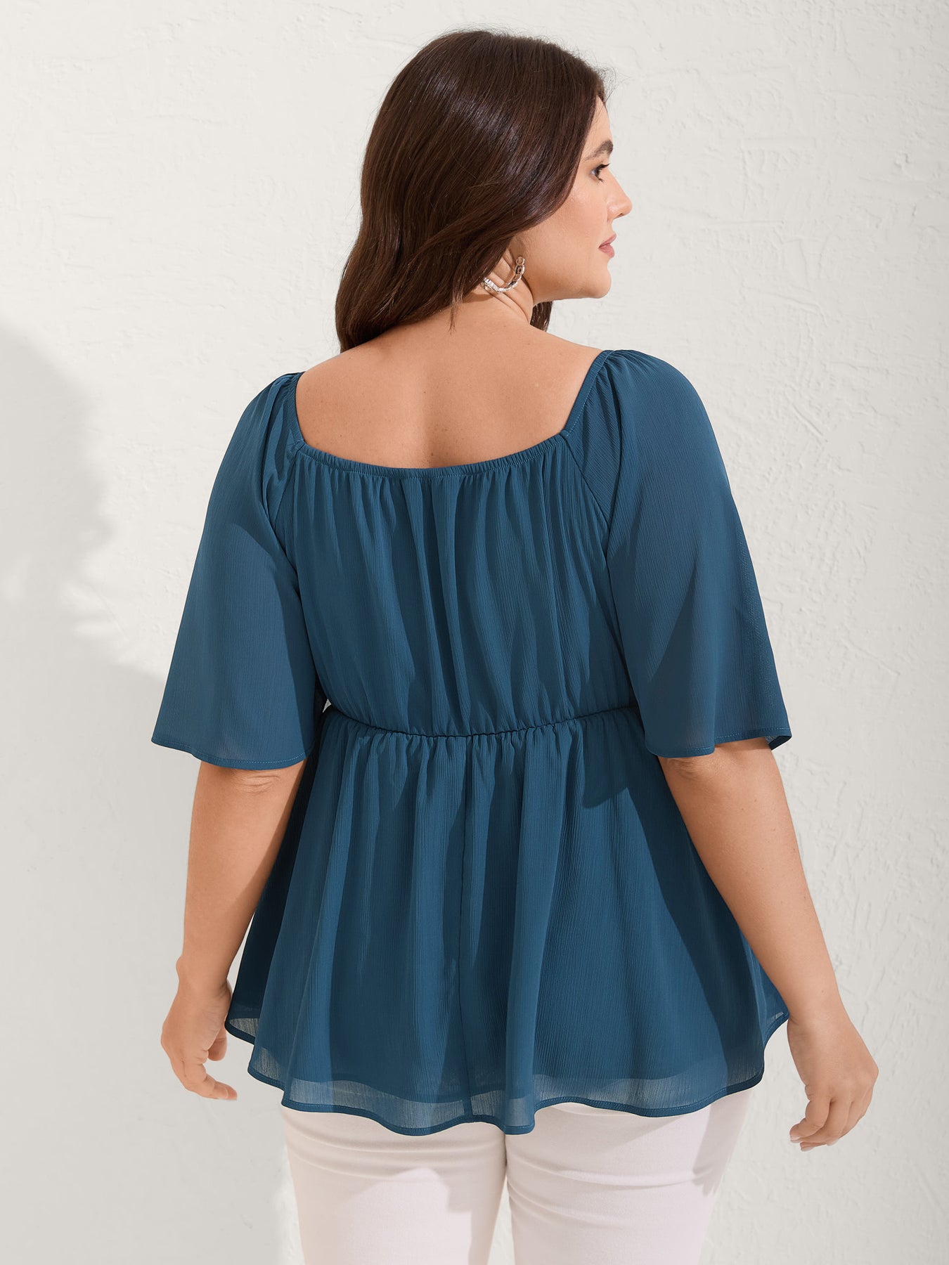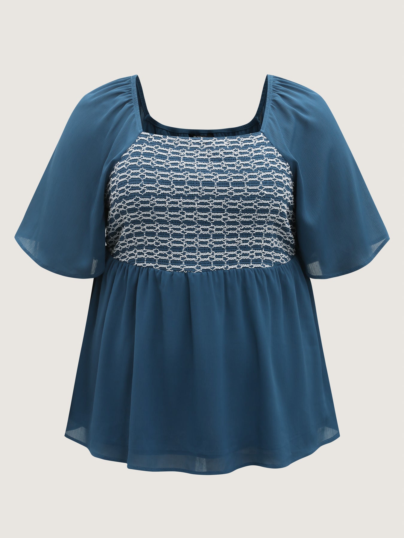 Shirred Ruffled Sleeve Color Contrast Blouse
