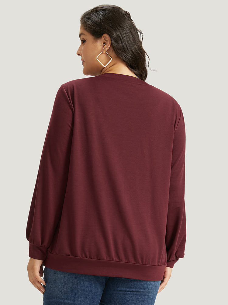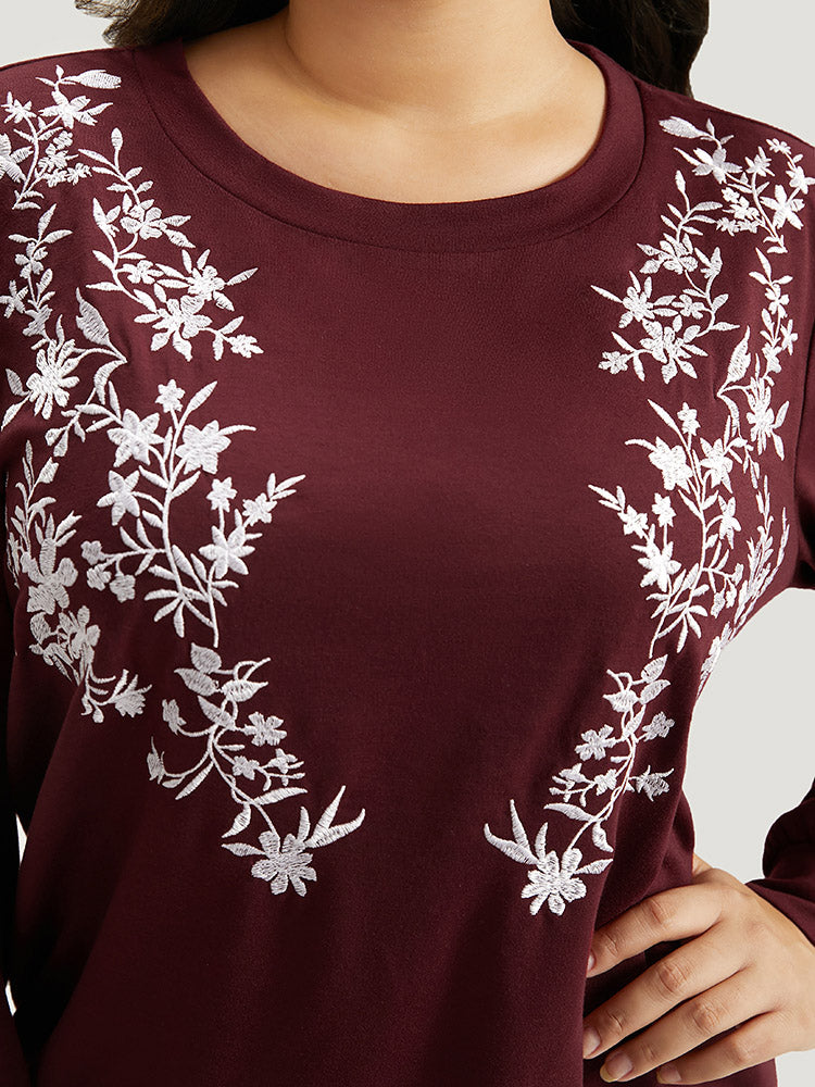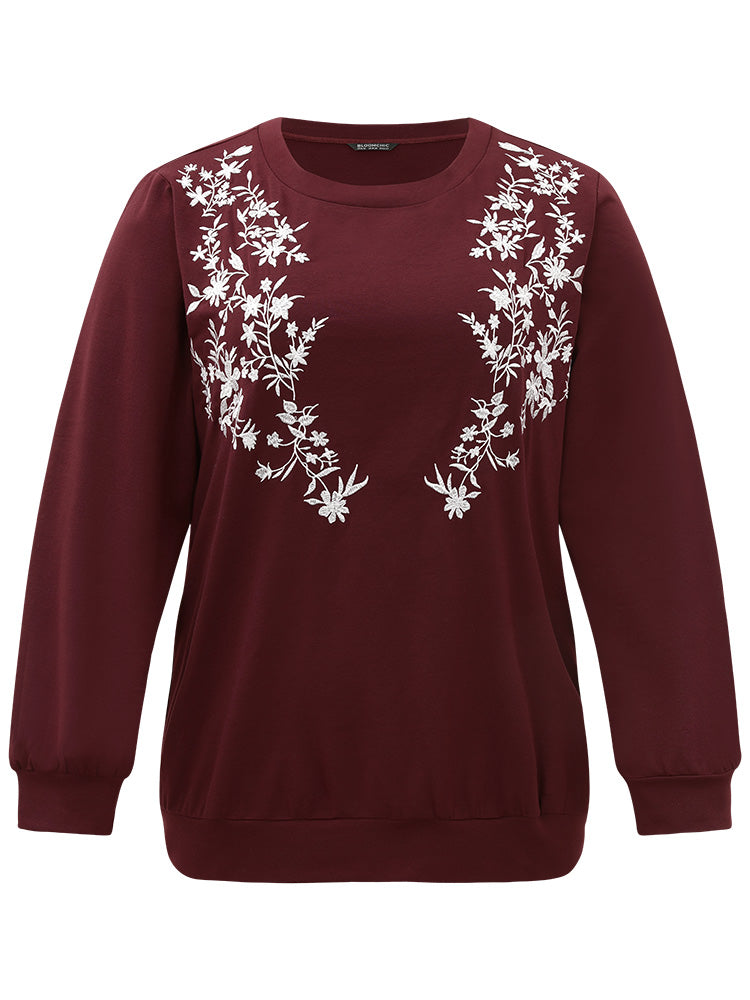Silhouette Floral Print Embroidered Crew Neck Sweatshirt