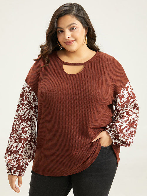 Silhouette Floral Print Keyhole Lantern Sleeve Sweatshirt