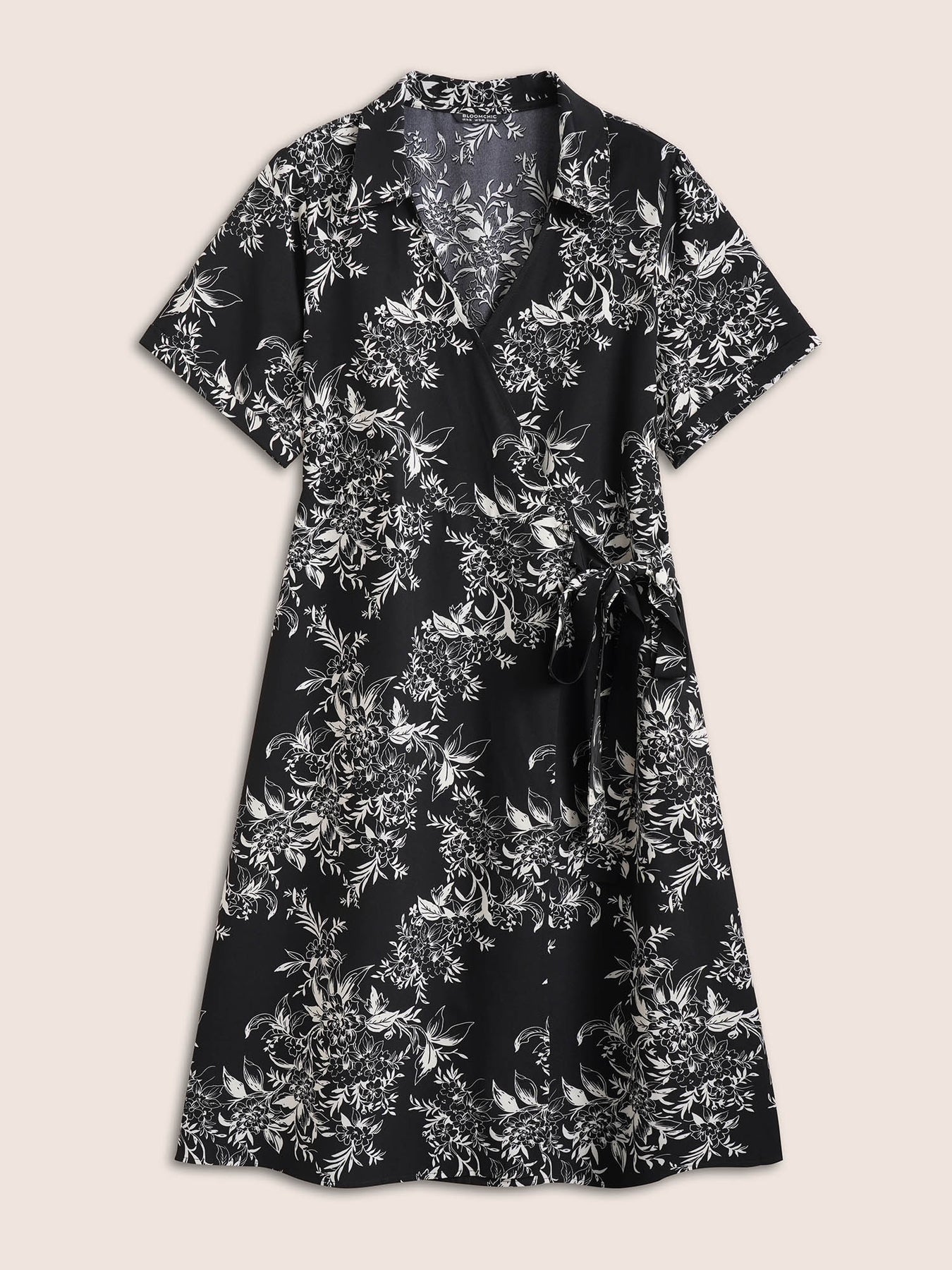 Silhouette Floral Print Ties Lapel Collar Dress