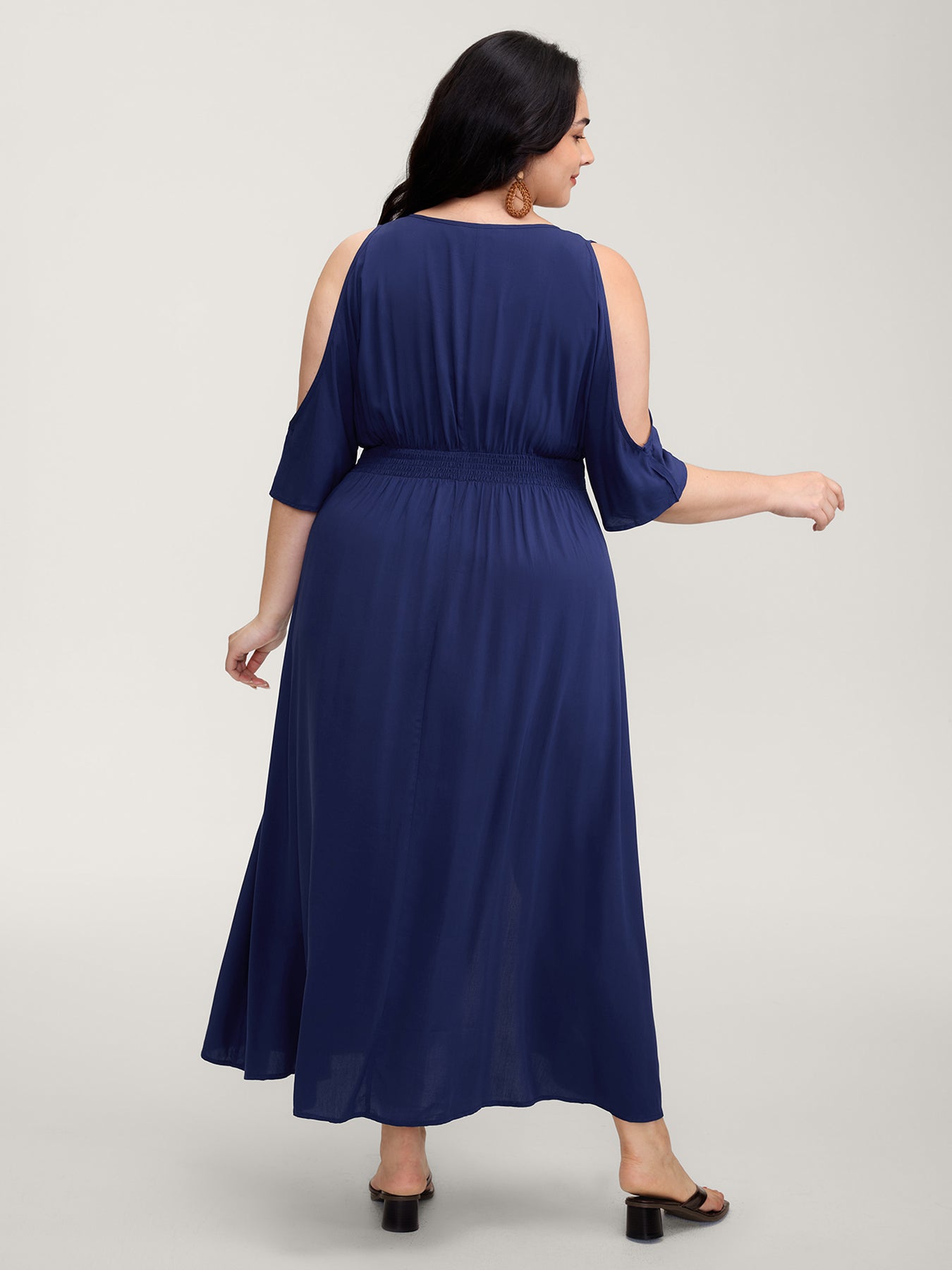 Sleeve Cut-Out Shirred Waist Maxi Dress