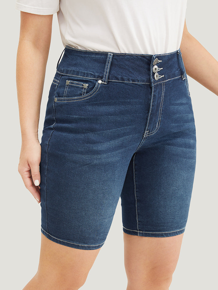 Slightly Stretchy High Rise Black Wash Denim Shorts