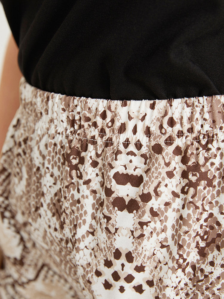 Snakeskin Print Elastic Waist Pocket Sleep Shorts