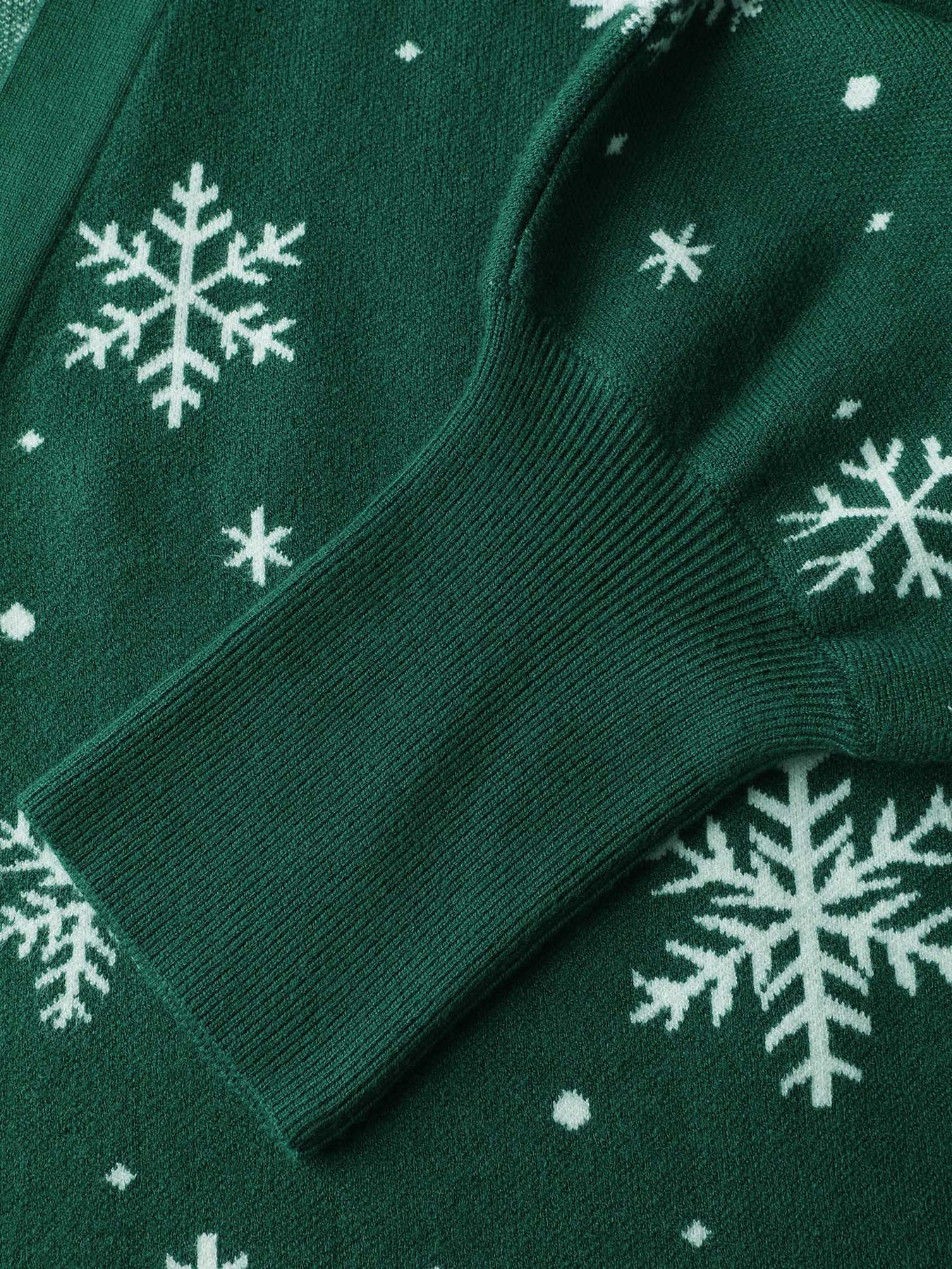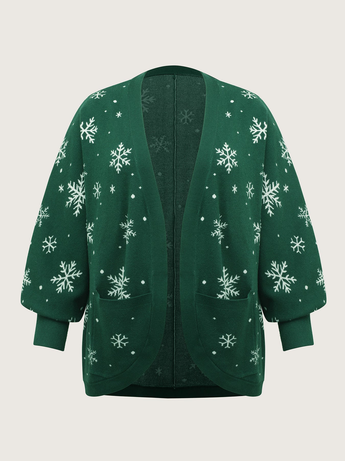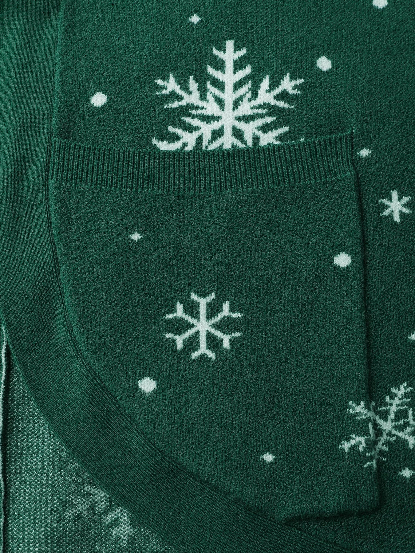 Snowflake Pattern Pockets Curvy Hem Knit Cardigan