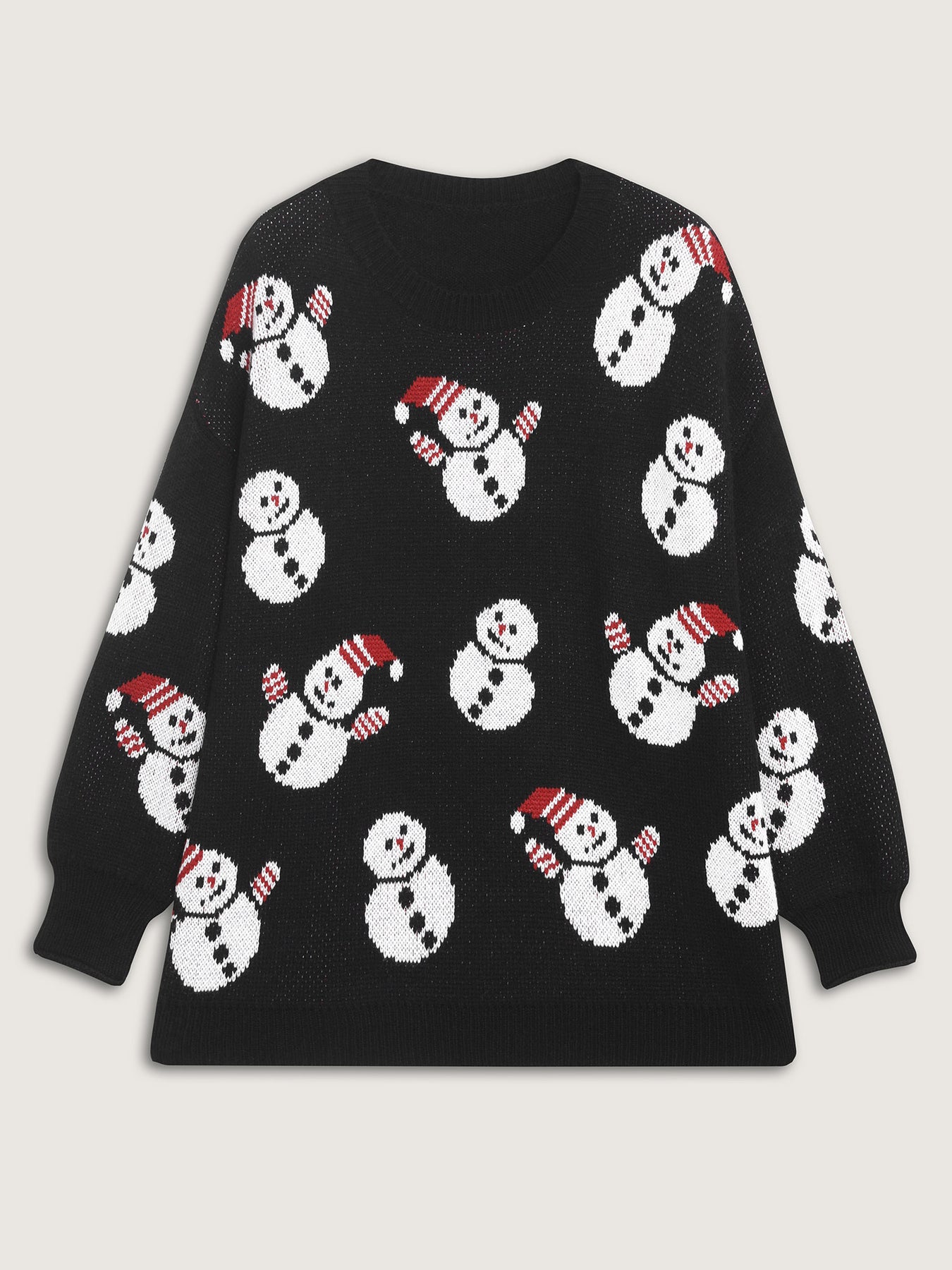 Snowman Jacquard Round Neck Pullover