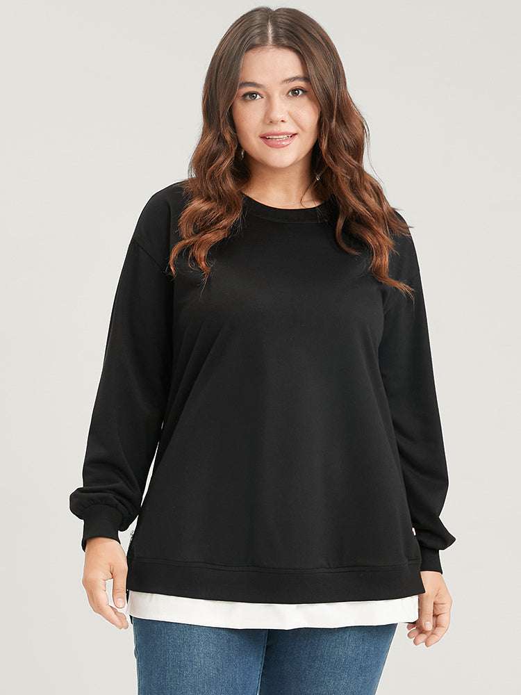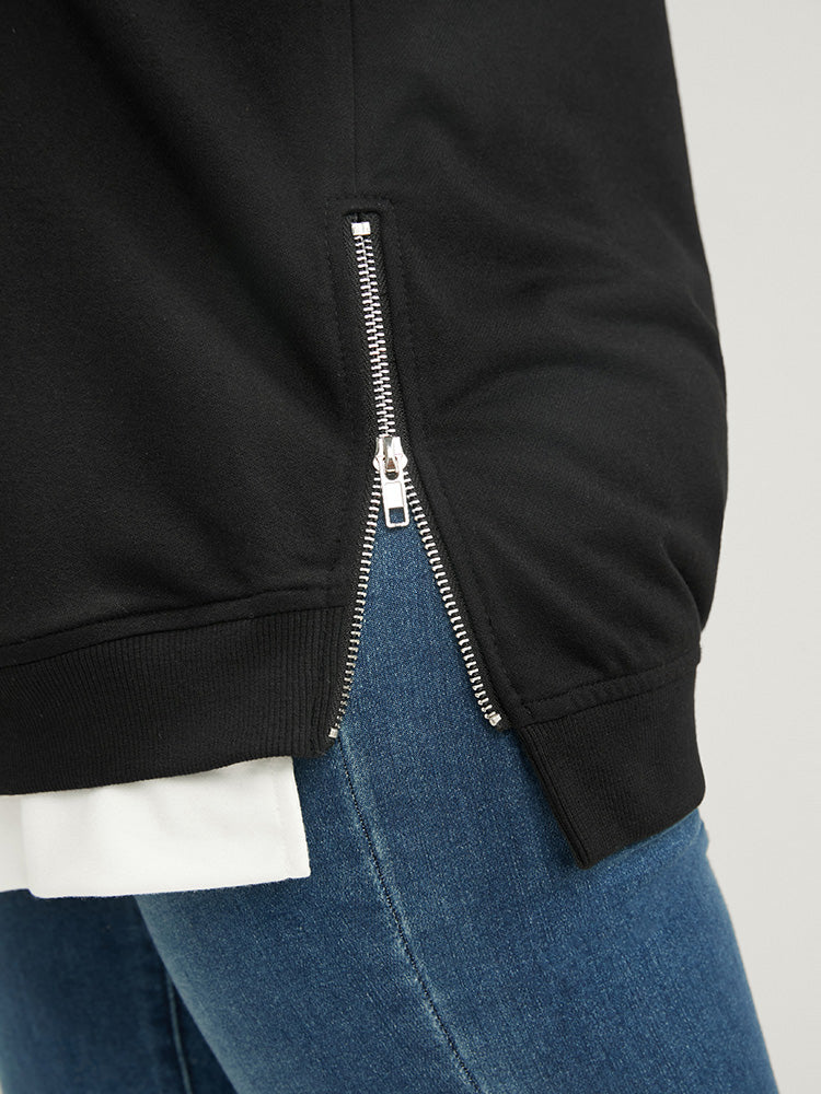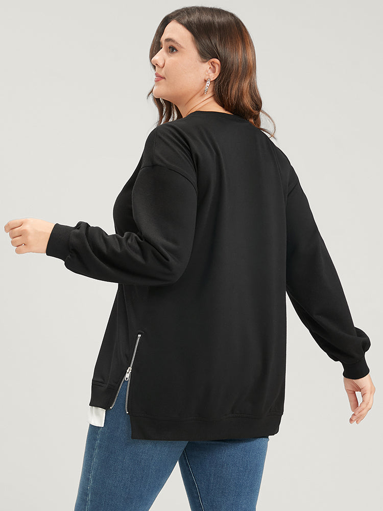 Solid Contrast Zipper Side Lantern Sleeve Sweatshirt