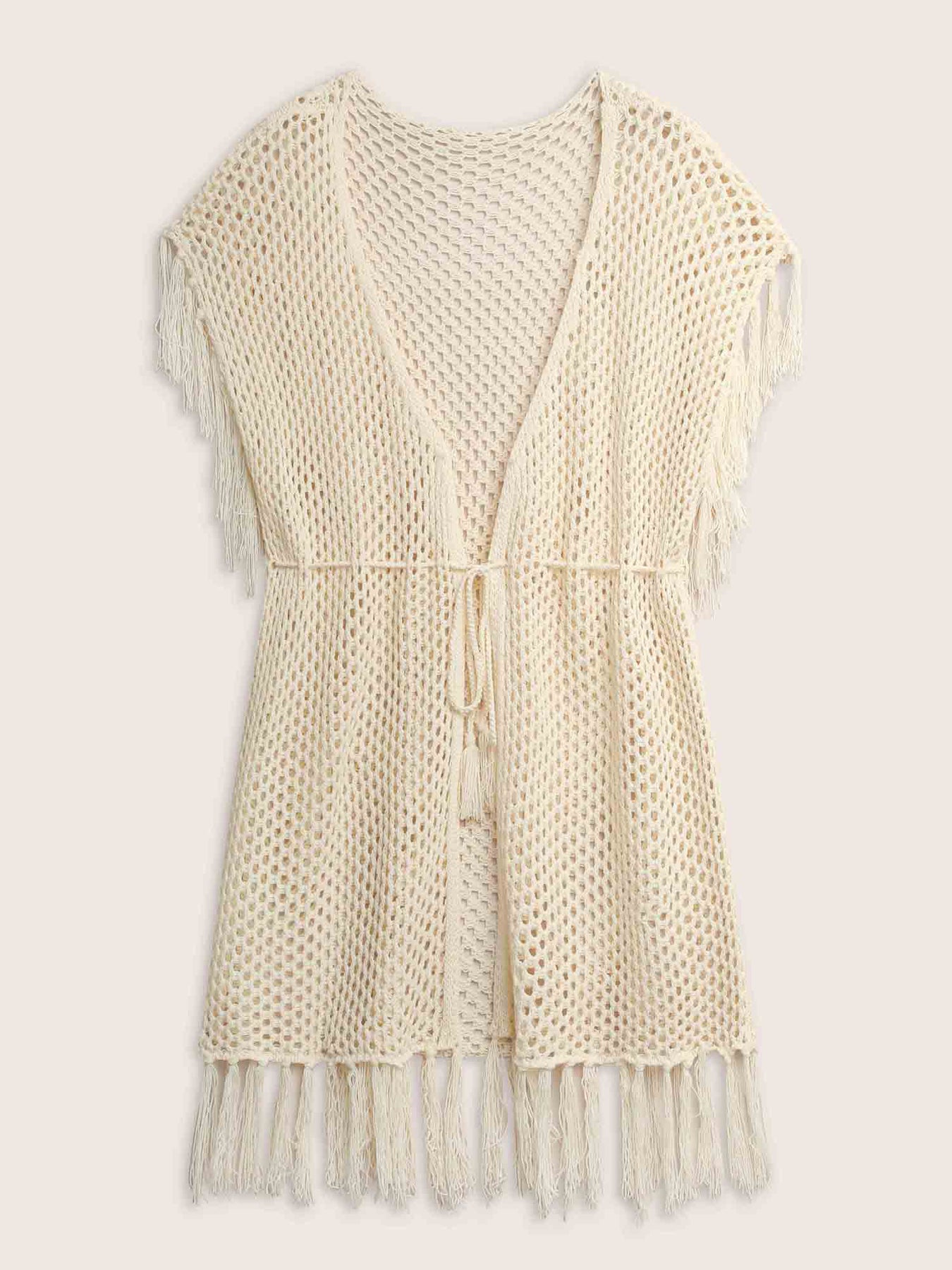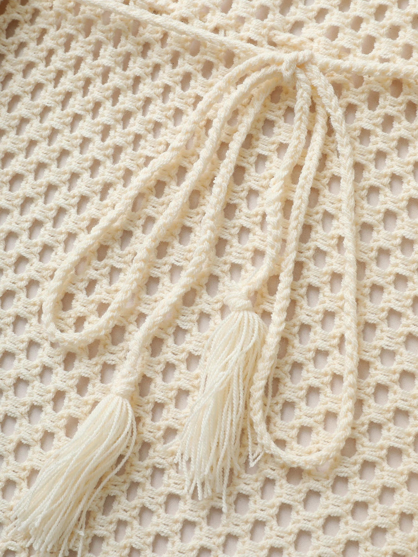 Solid Cut Out Drawstring Tassel Trim Swim Cover Up