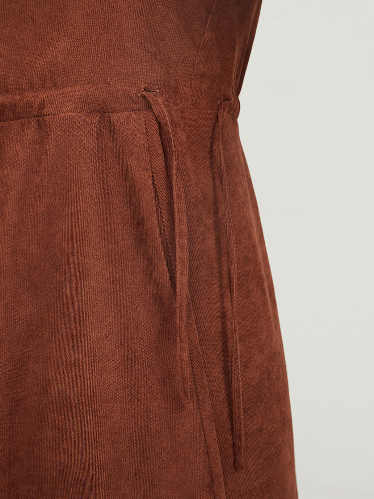 Solid Drawstring Pocket Button Detail Shirt Collar Corduroy Dress