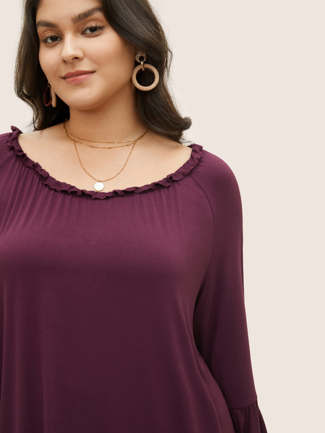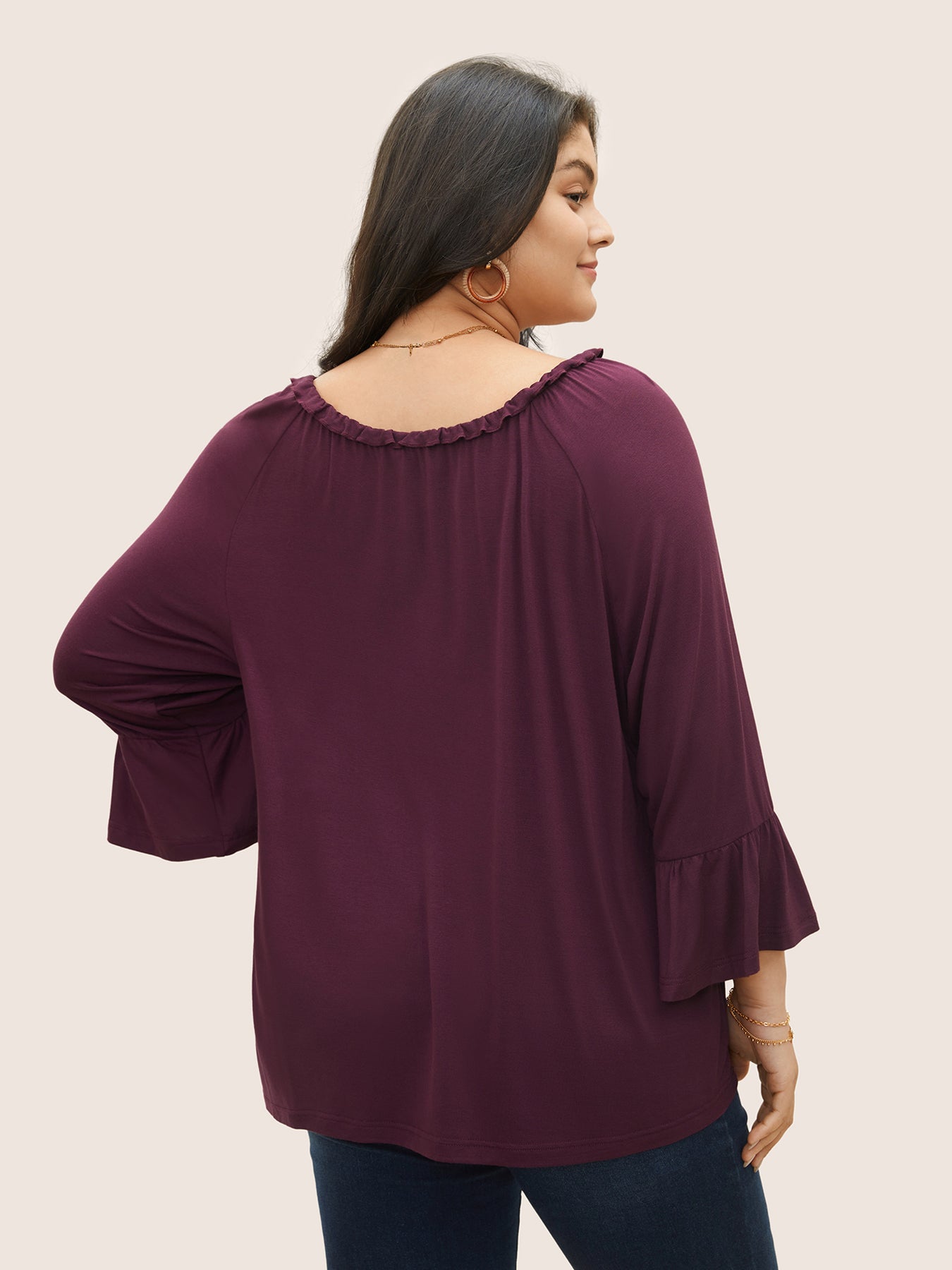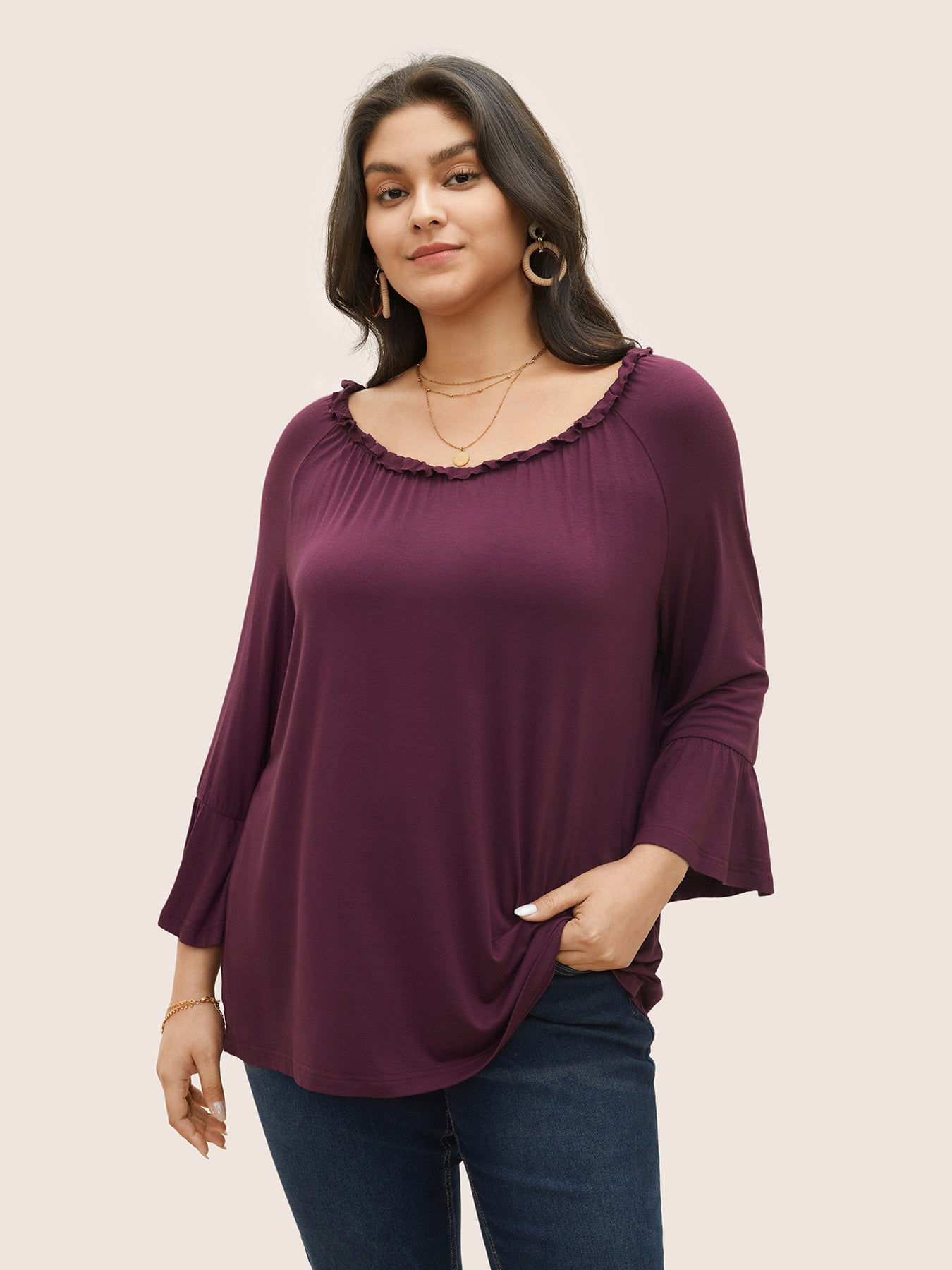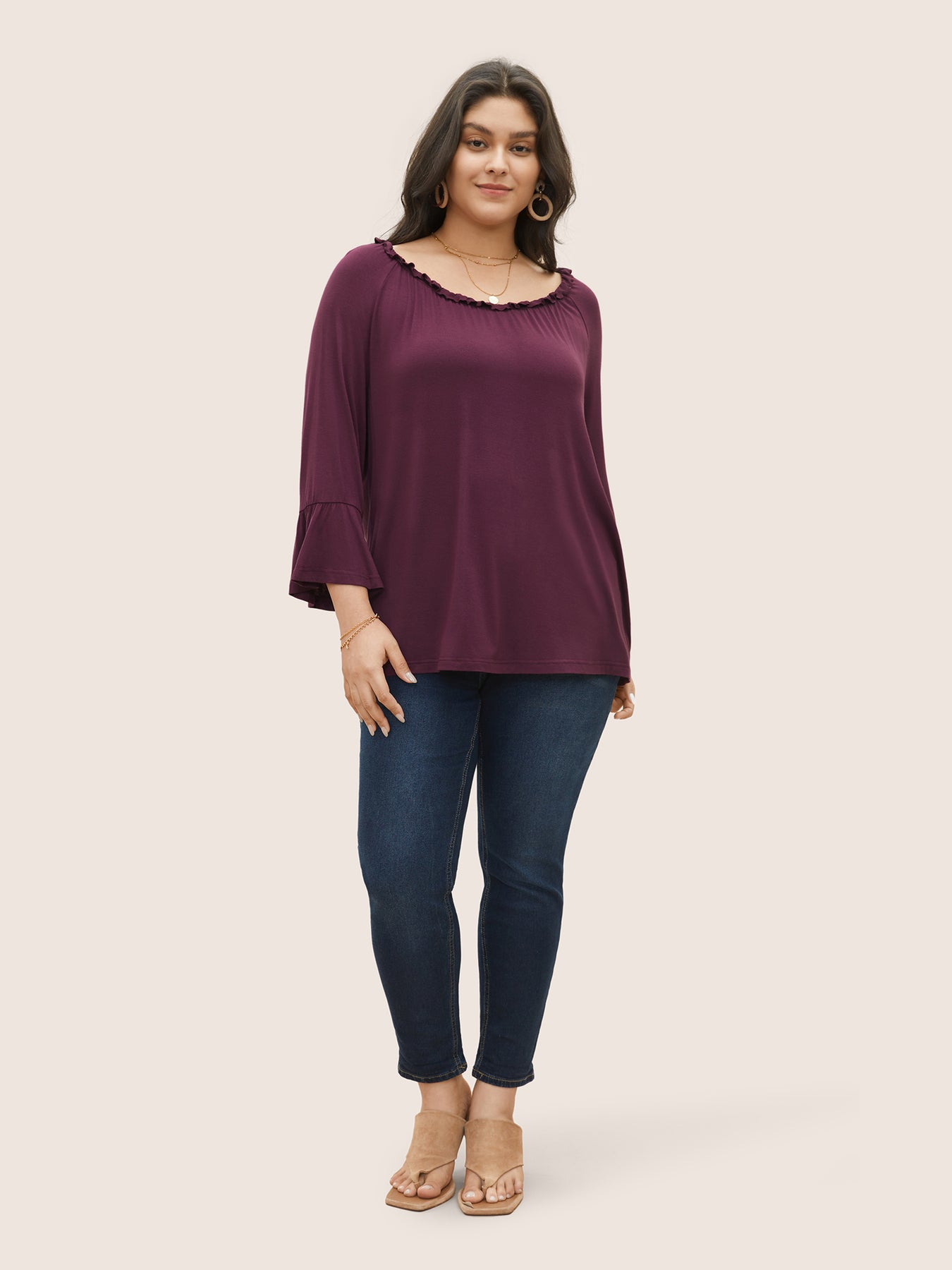 Solid Flutter Sleeve Off Shoulder T-shirt