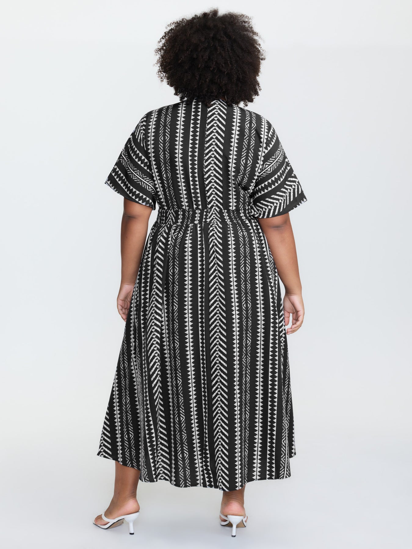 Solid Geometric Dolman Sleeve Pocket Shirred Split Hem Dress