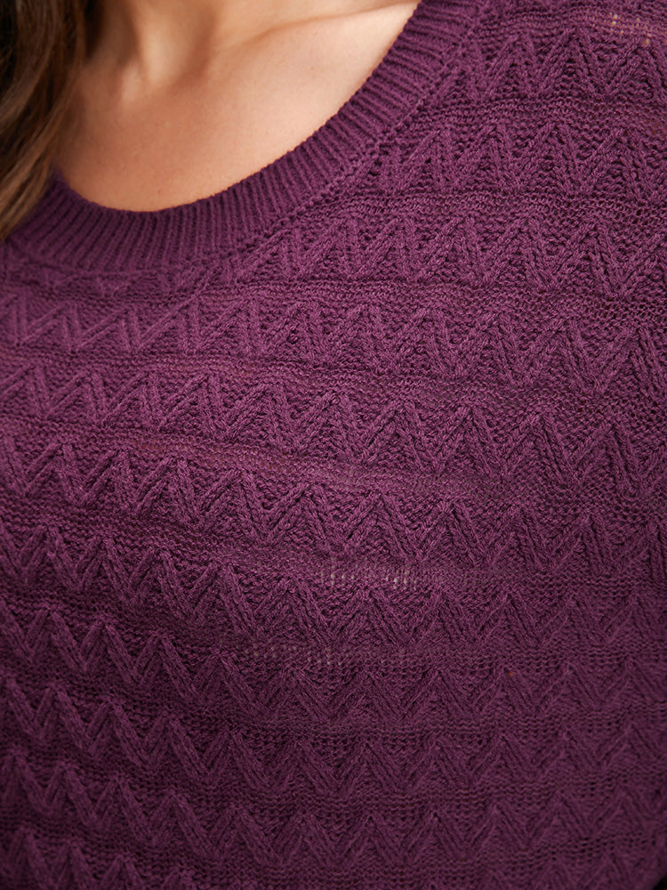 Solid Geometric Pointelle Knit Round Neck Knit Top
