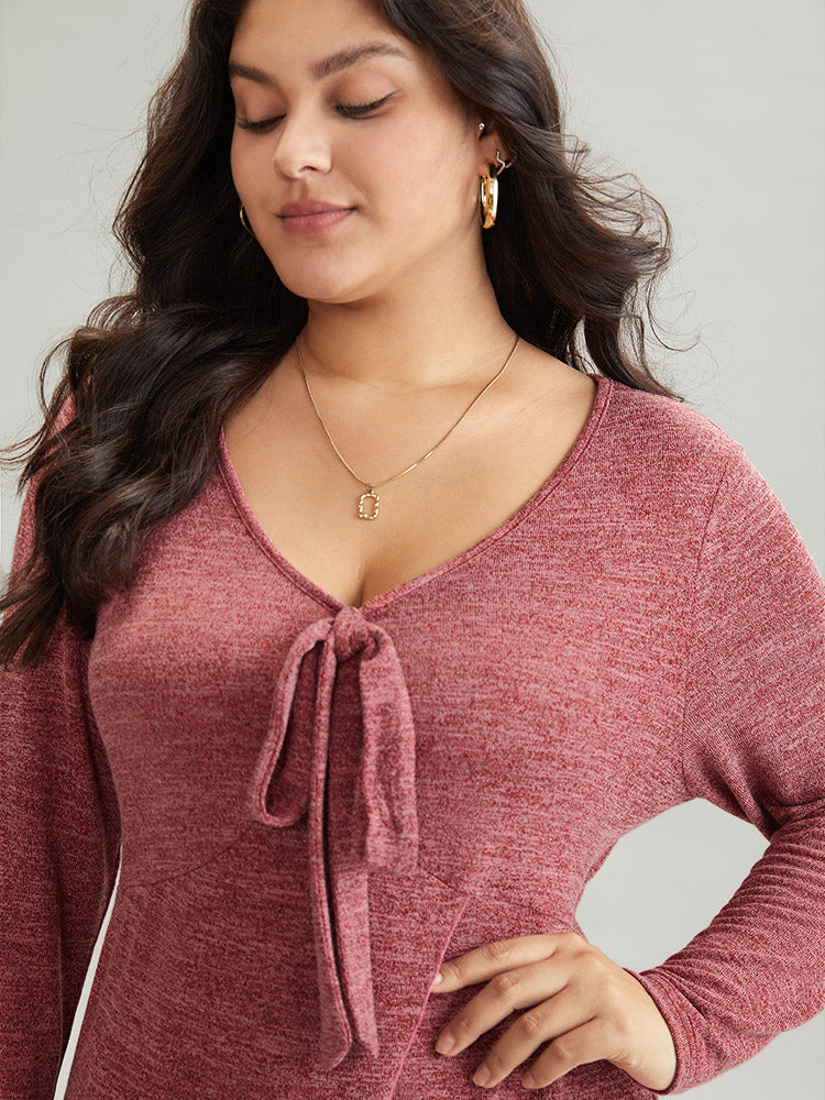 Solid Heather Bowknot Arc Hem Ties T-shirt