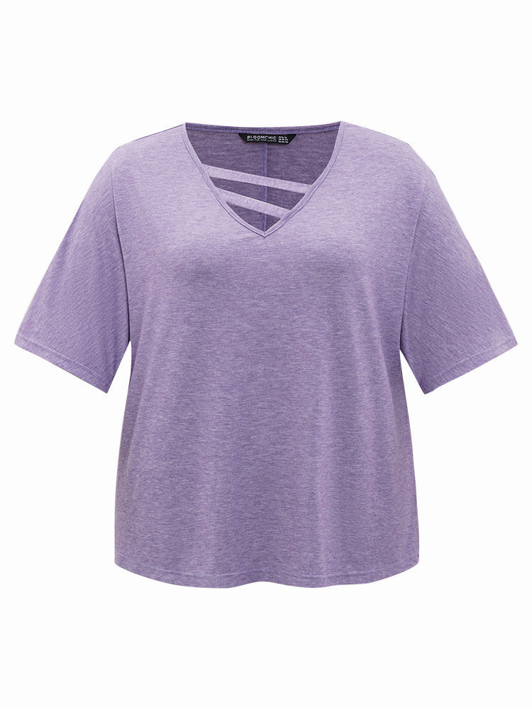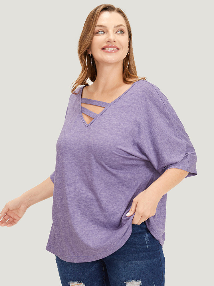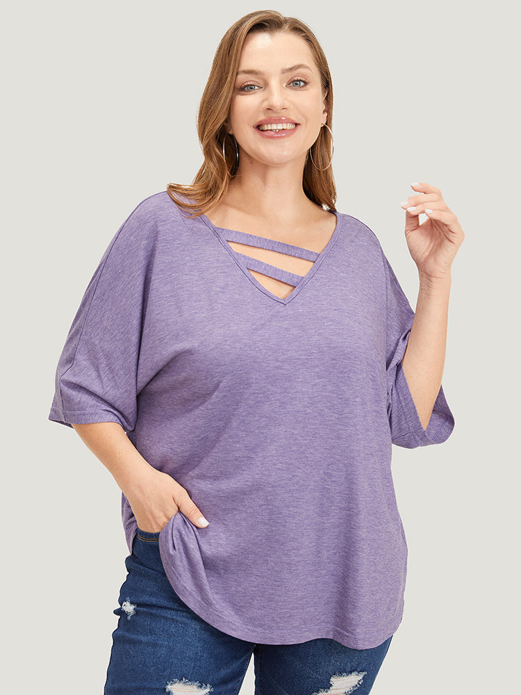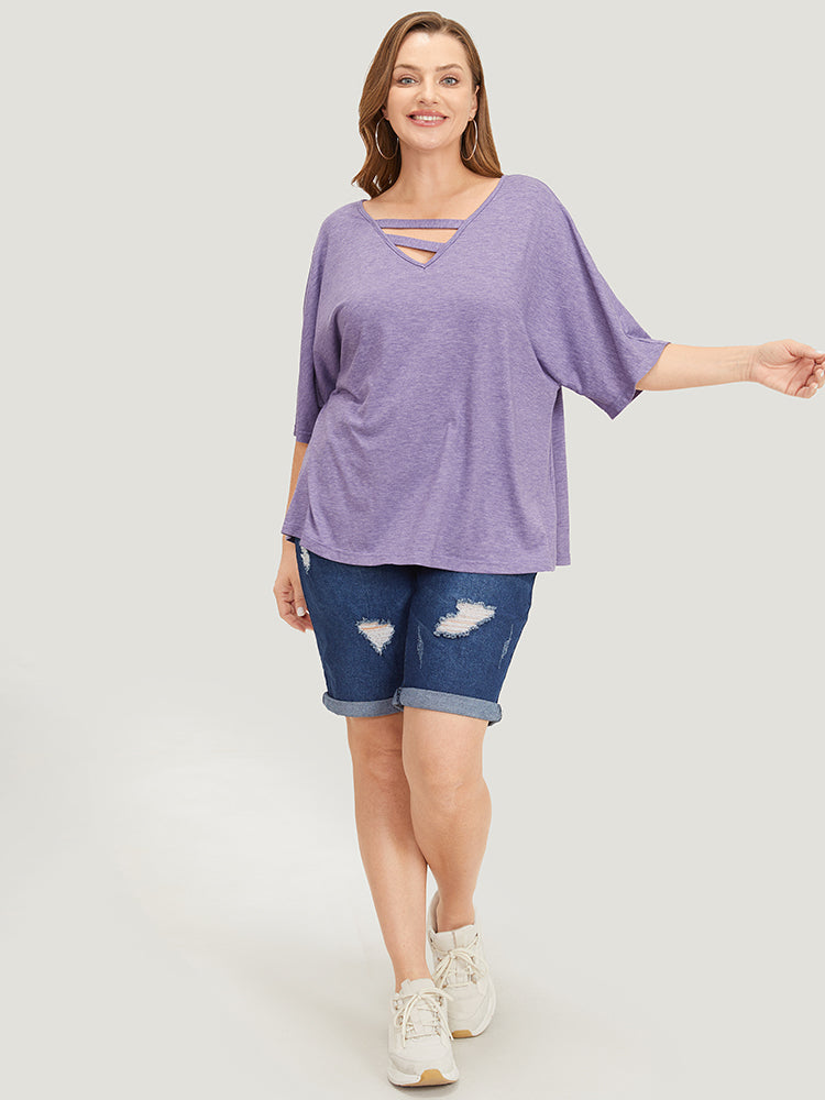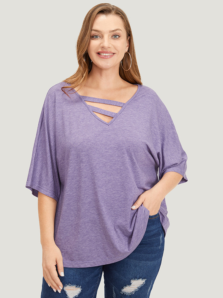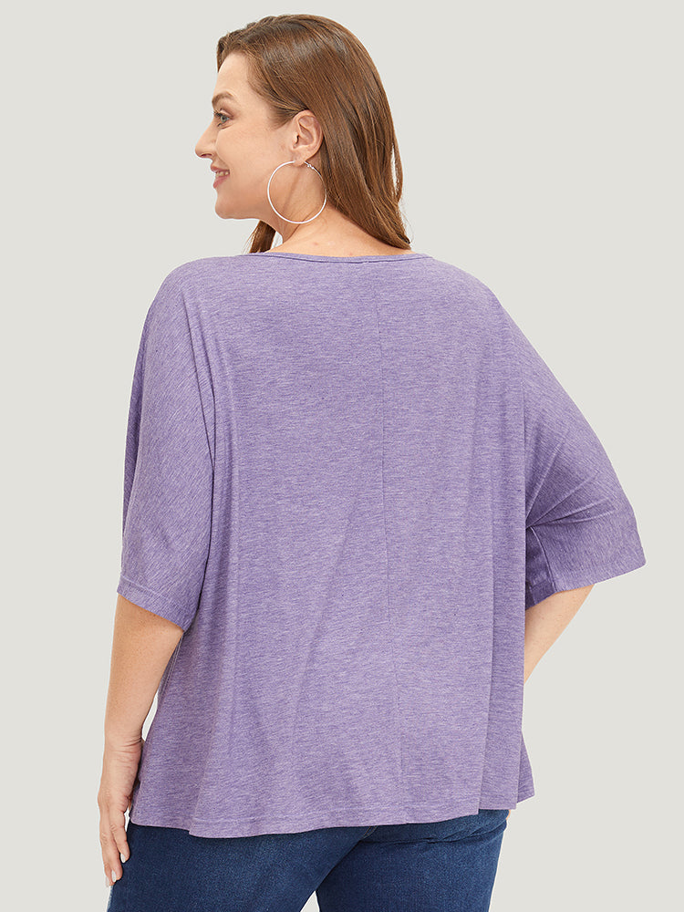 Solid Heather Keyhole Neck Dolman Sleeve T-shirt