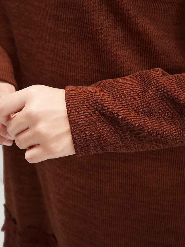 Solid Lace Asymmetrical Hem Funnel Neck Sweatshirt