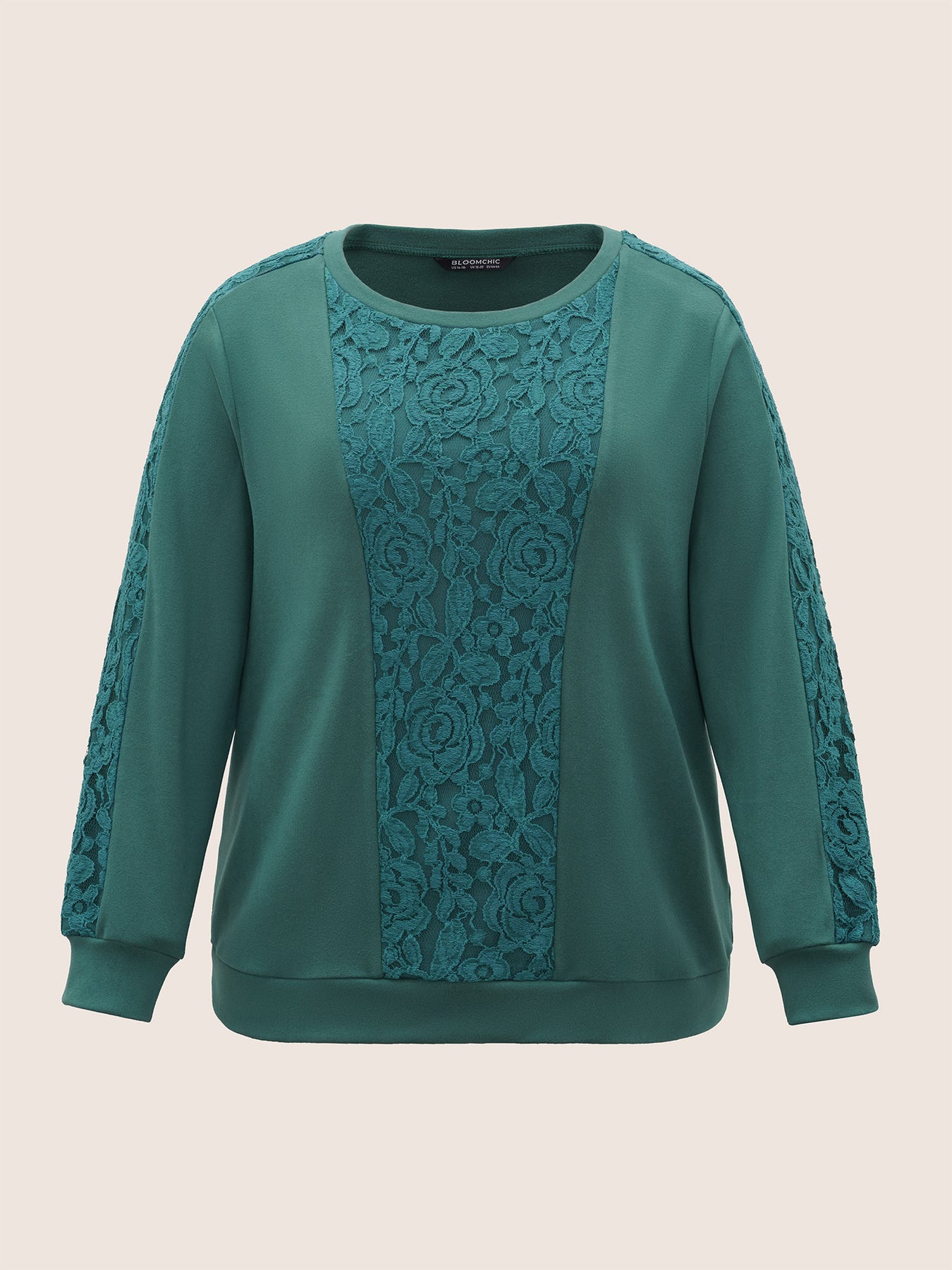 Solid Lace Patchwork Crew Neck Sweatshirt