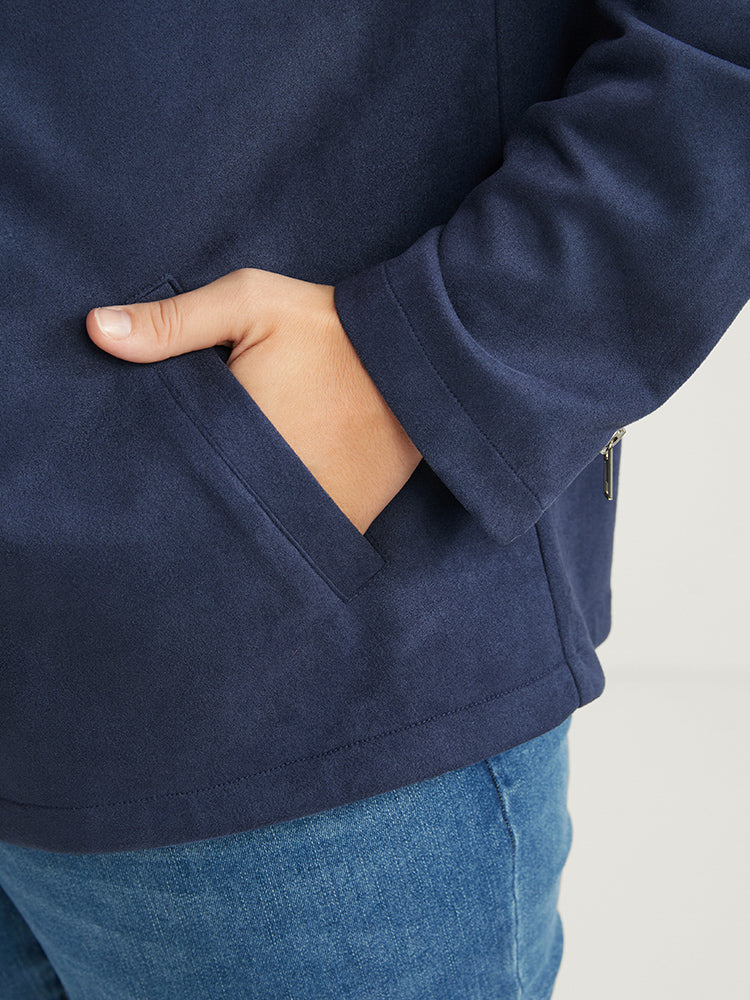 Solid Lapel Collar Pocket Zip Up Coat