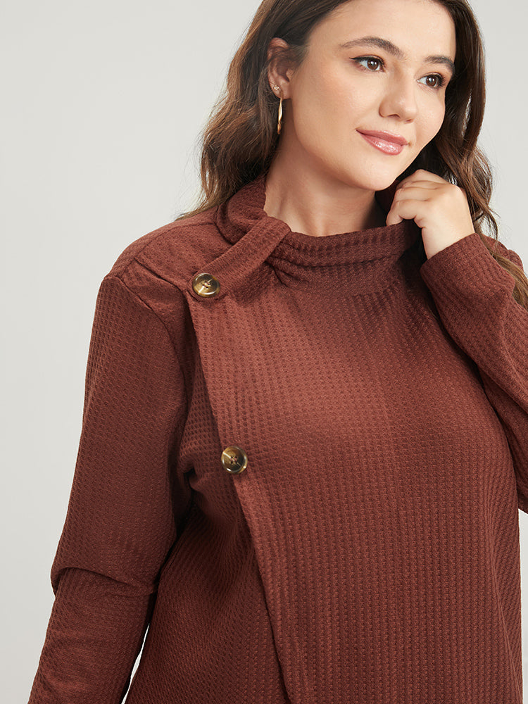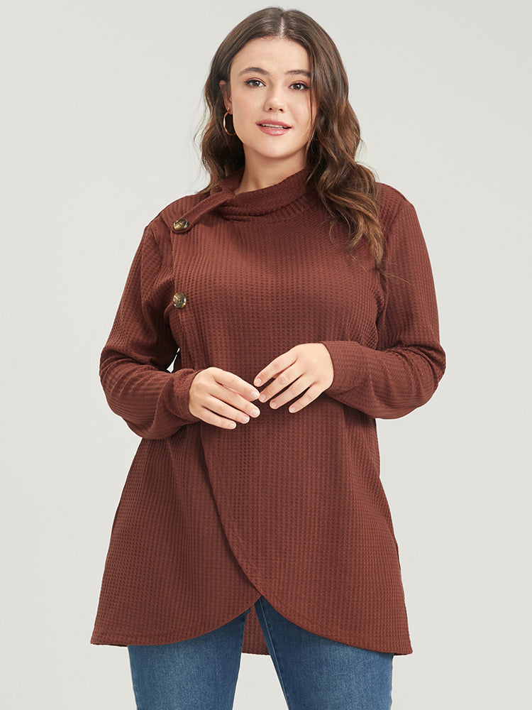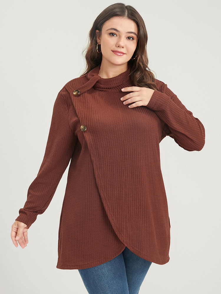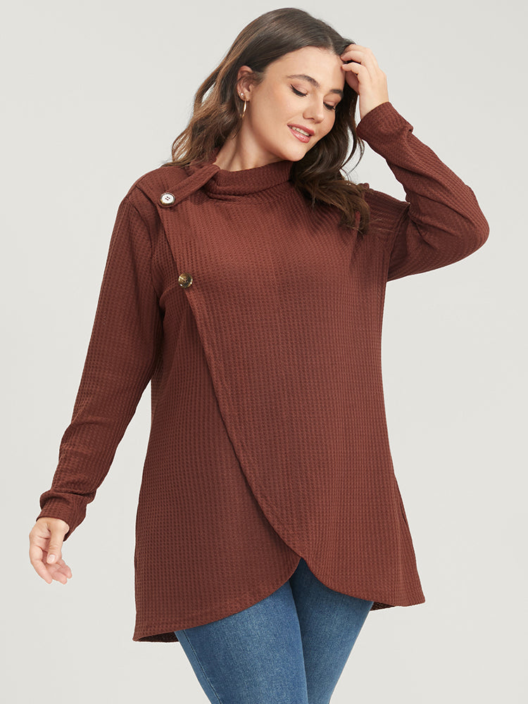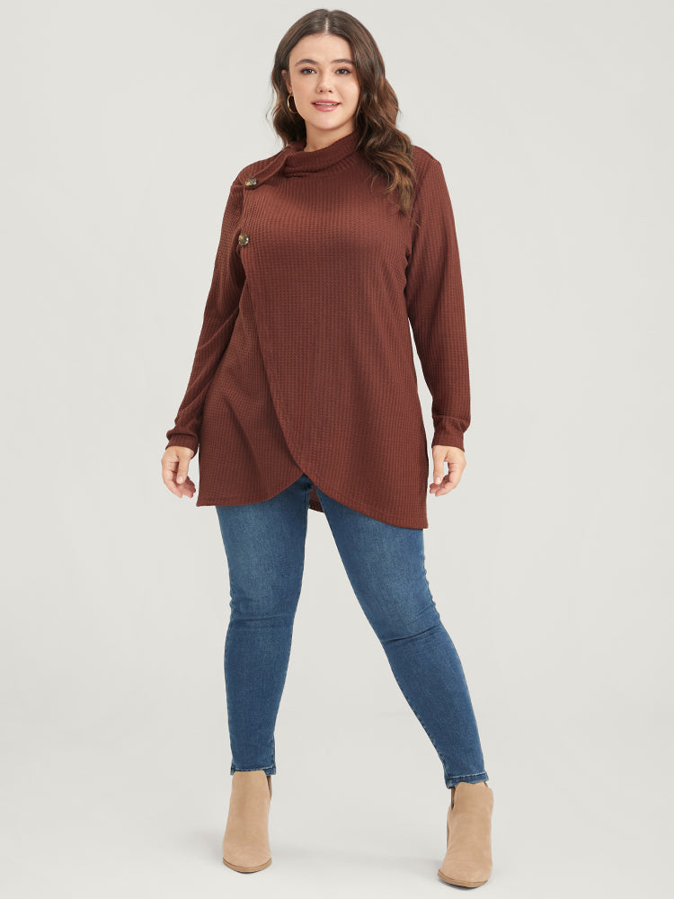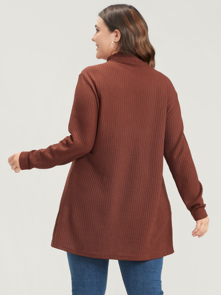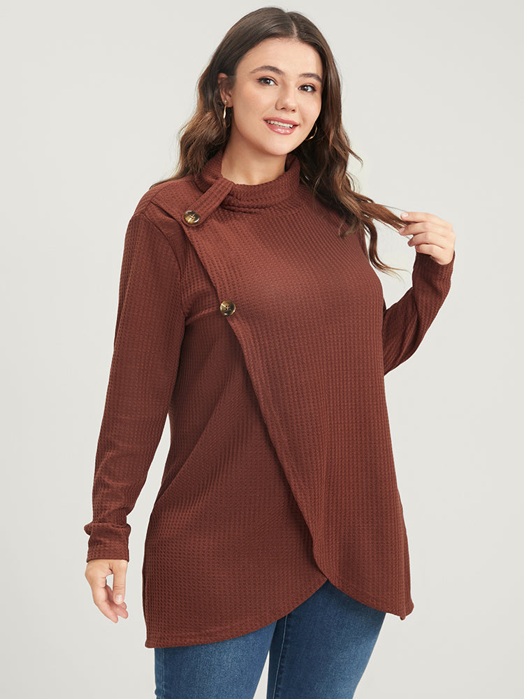 Solid Mock Neck Waffle Knit Wrap Long Tee