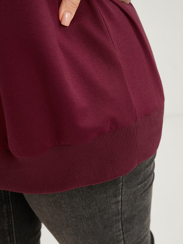 Solid Pearls Beaded Raglan Sleeve Drop Shoulder Sweatshirt