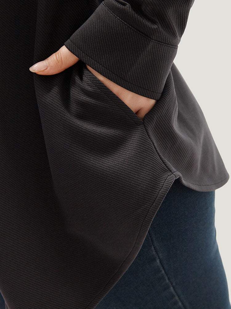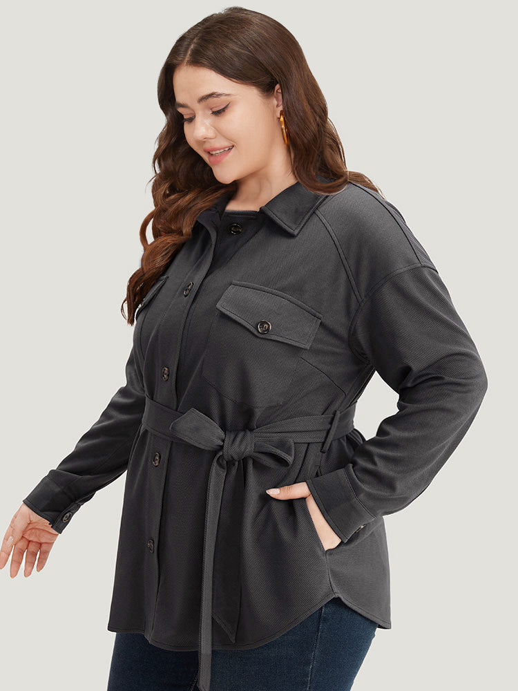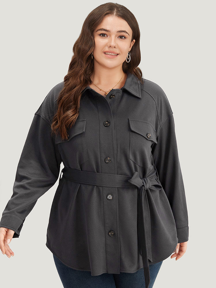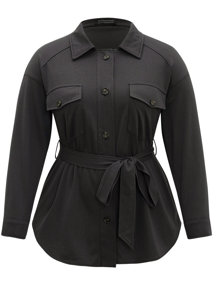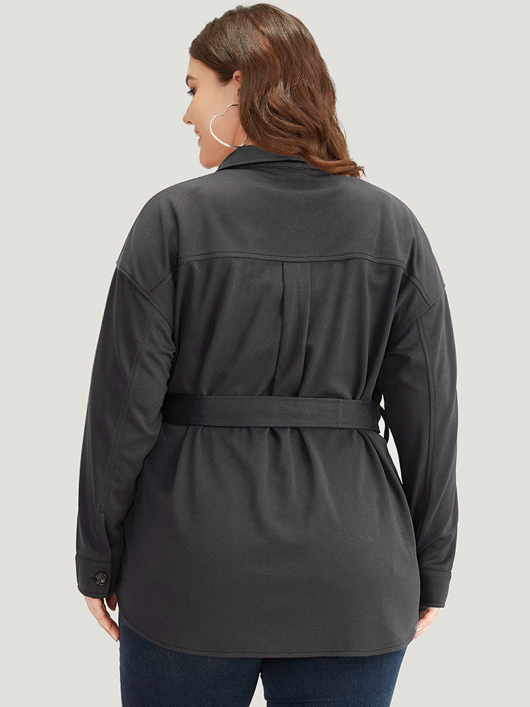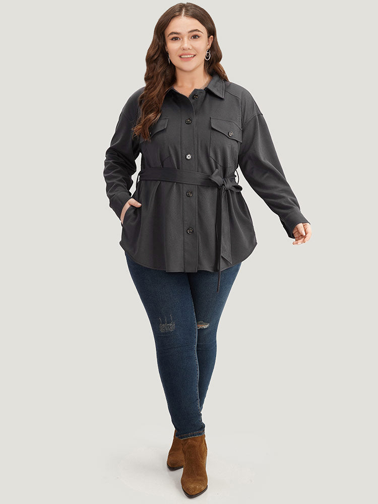 Solid Pocket Button Through Belted Coat