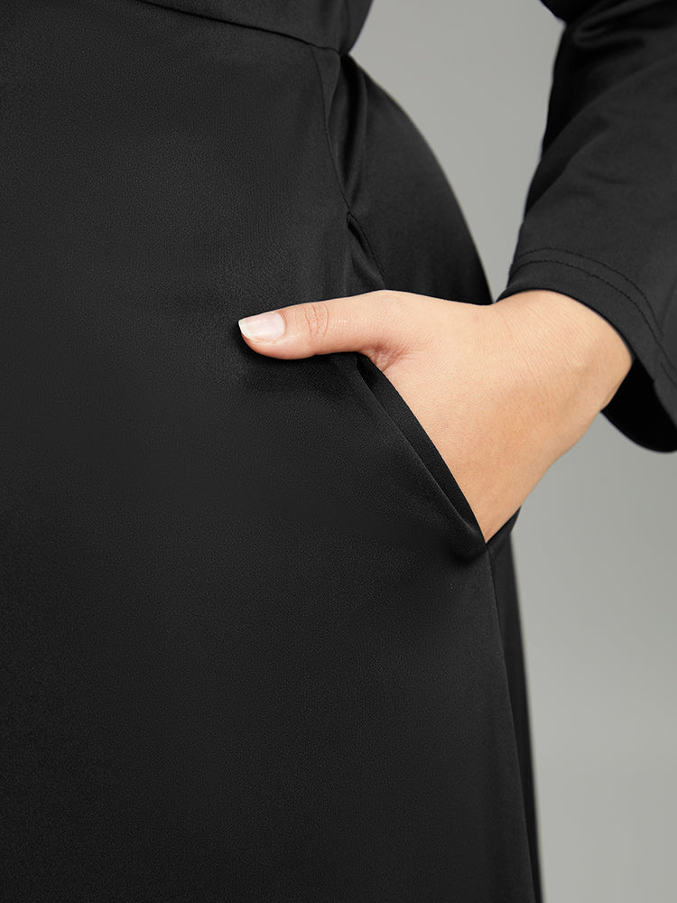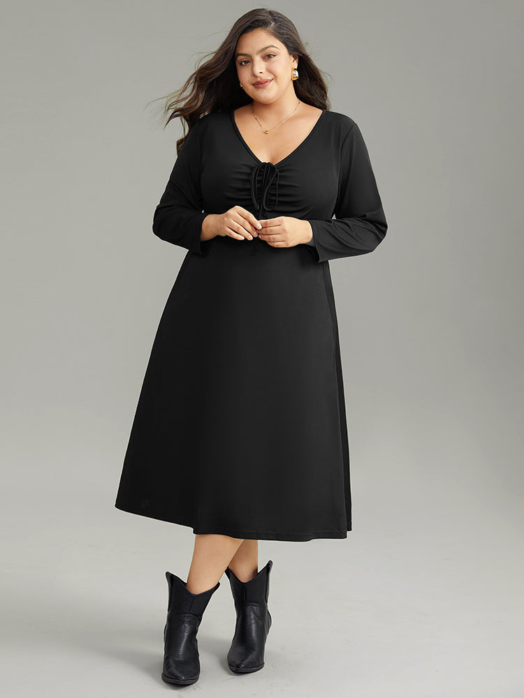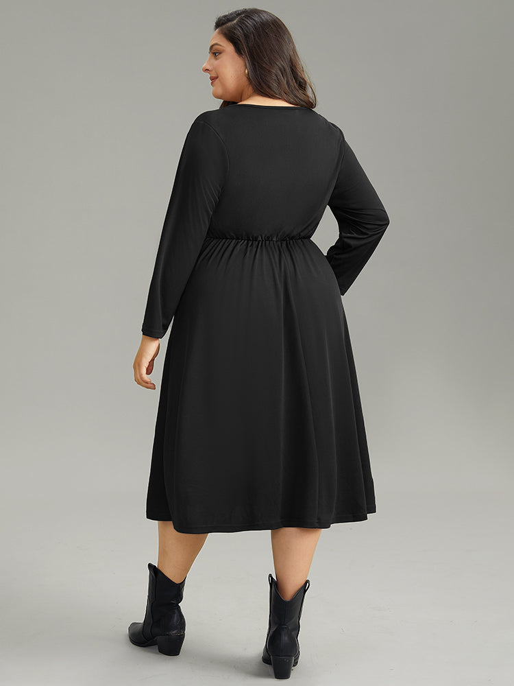Solid Ruched Pocket Elastic Waist Ties Dress