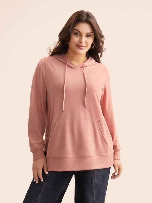 Solid Slightly Stretchy Hooded Drawstring Sweatshirt