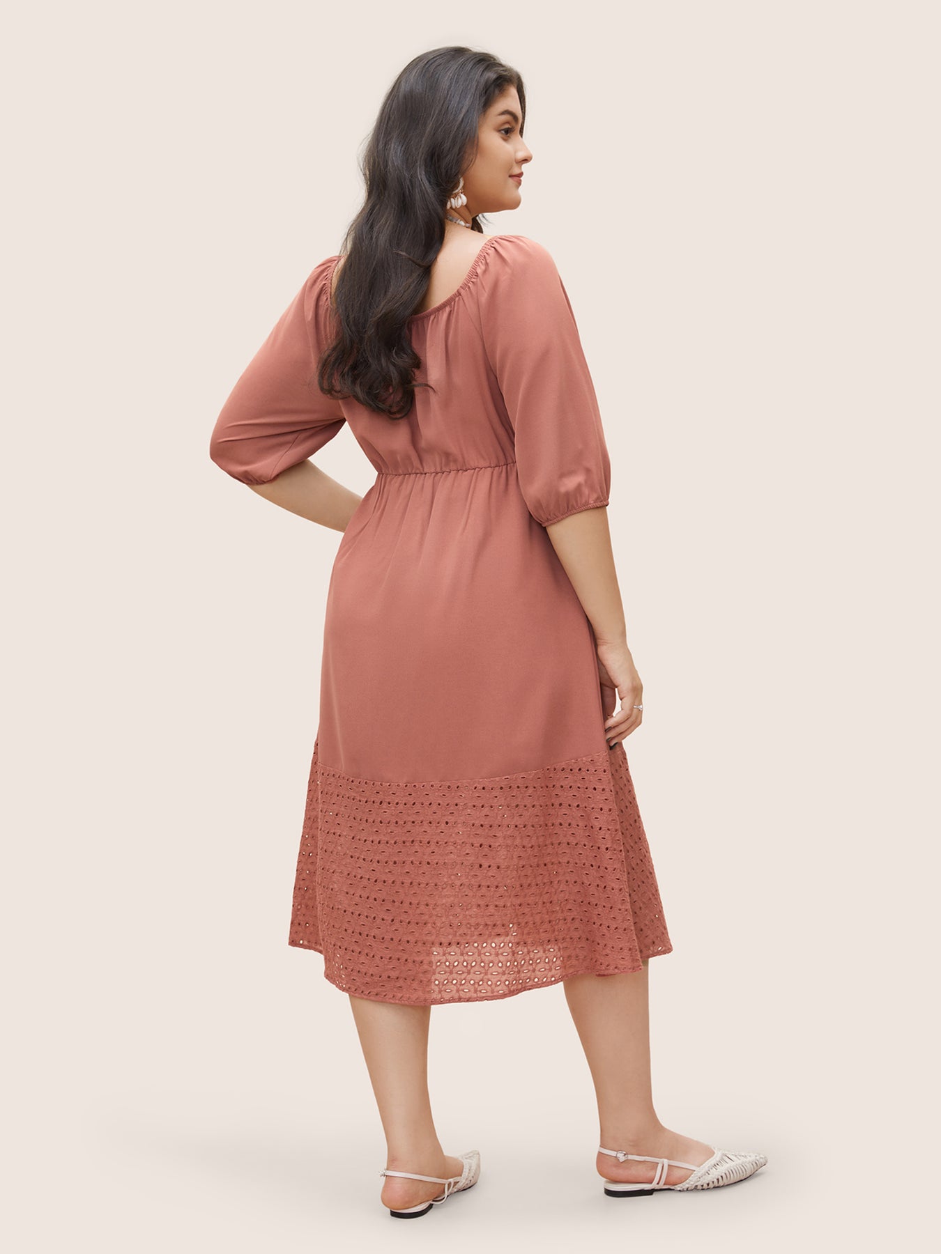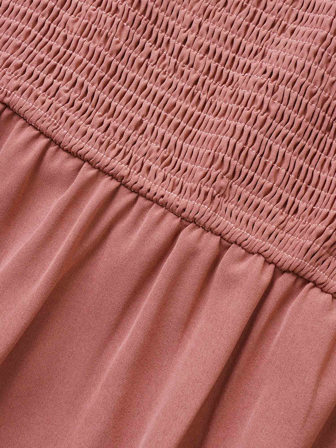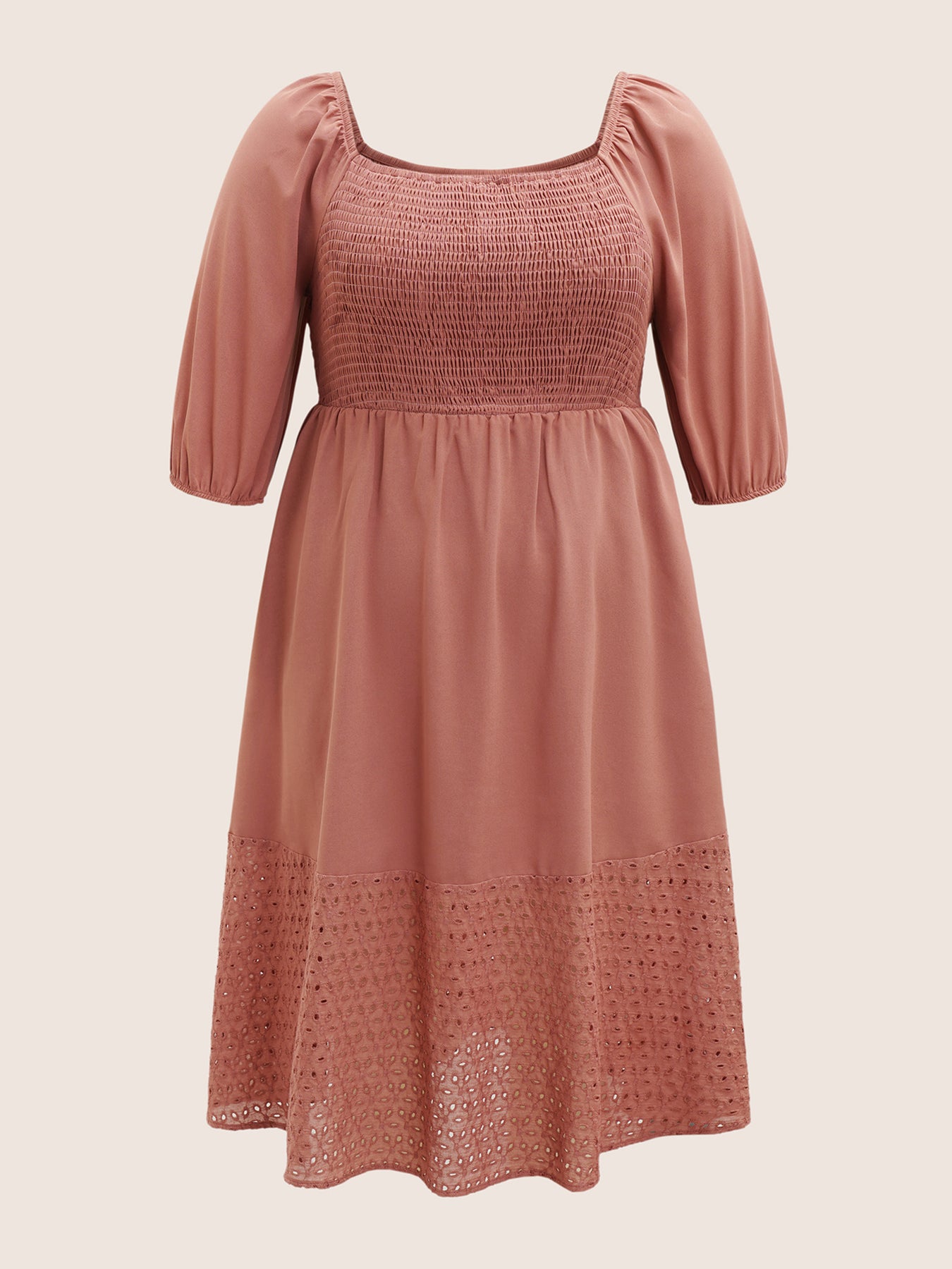 Solid Square Neck Shirred Elastic Waist Cut Out Dress