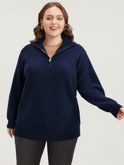 Solid Super Soft Plush Knit Zip Neck Knit Top