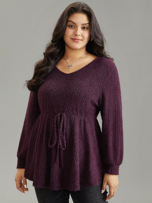 Solid Texture Fluffy Knot Ruffle Hem T-shirt