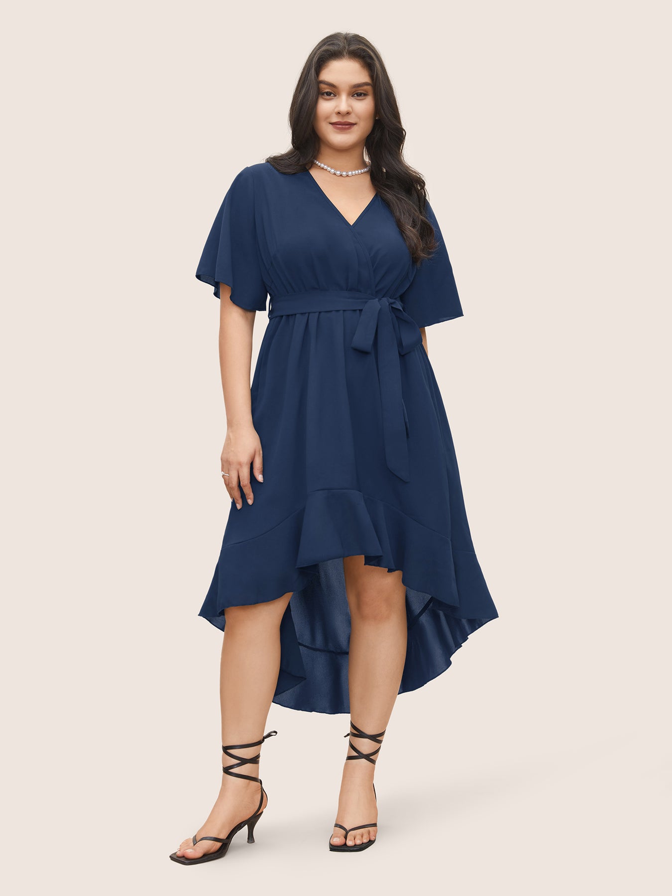 Bloom Dress - Solid Tie Surplice Ruffle High Low Dress