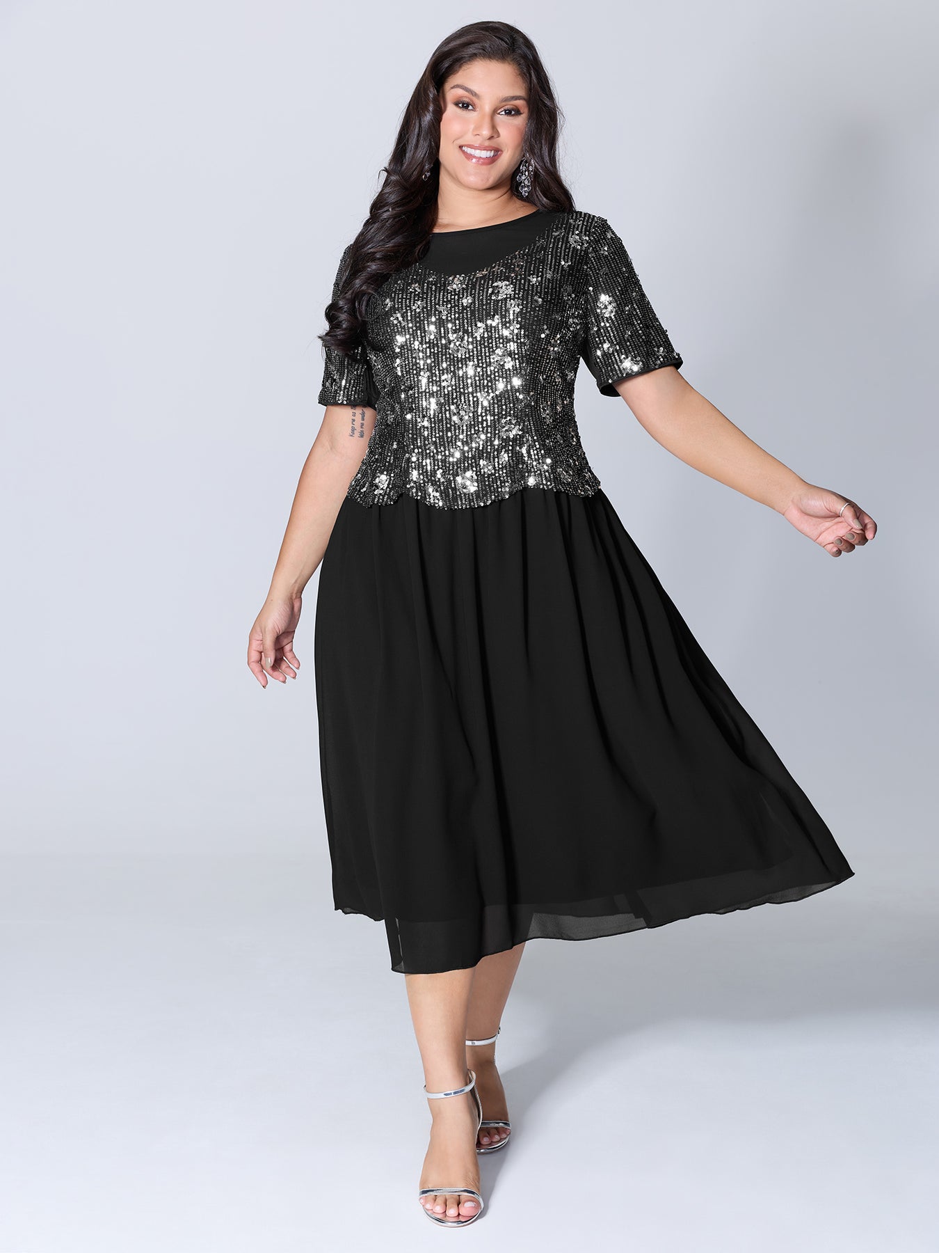 Sparkly 2-In-1 Color Contrast Midi Dress