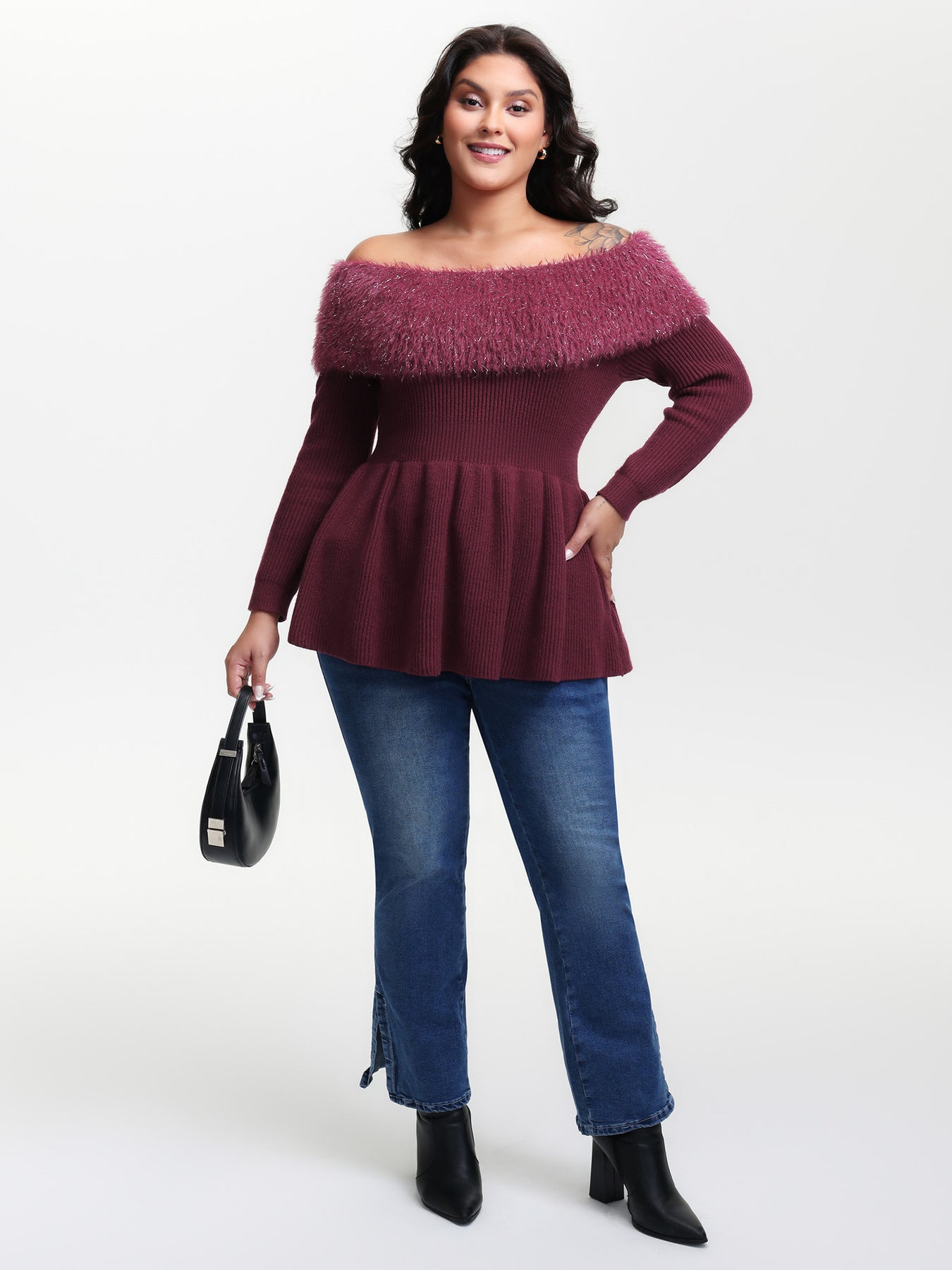 Sparkly Fur Off-Shoulder A-Line Pullover