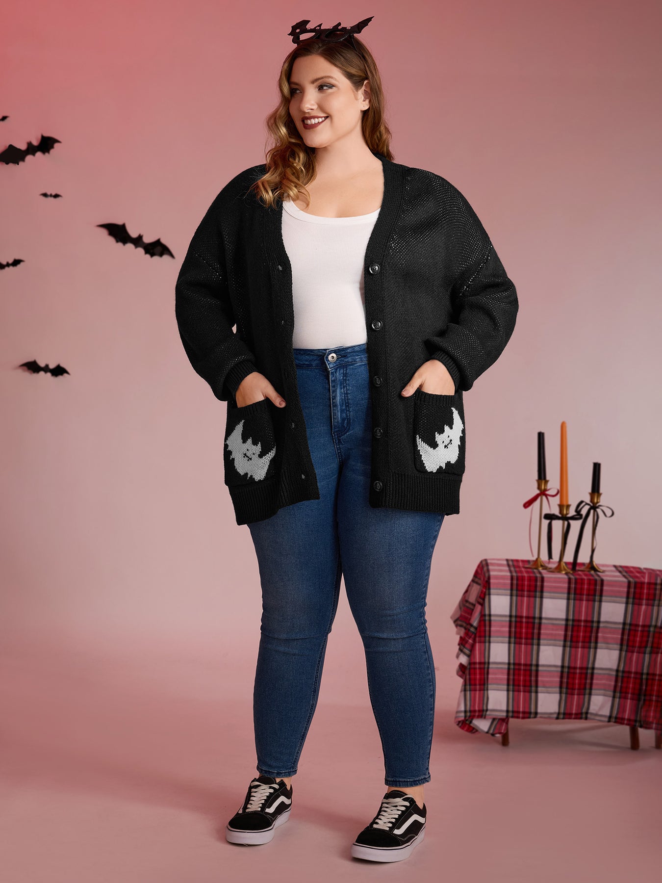 Spiderweb Bat Jacquard Pockets Knit Cardigan