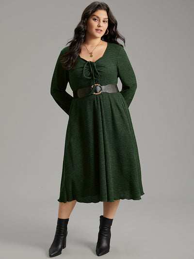 Square Neck Solid Drawstring Rib Knit Dress