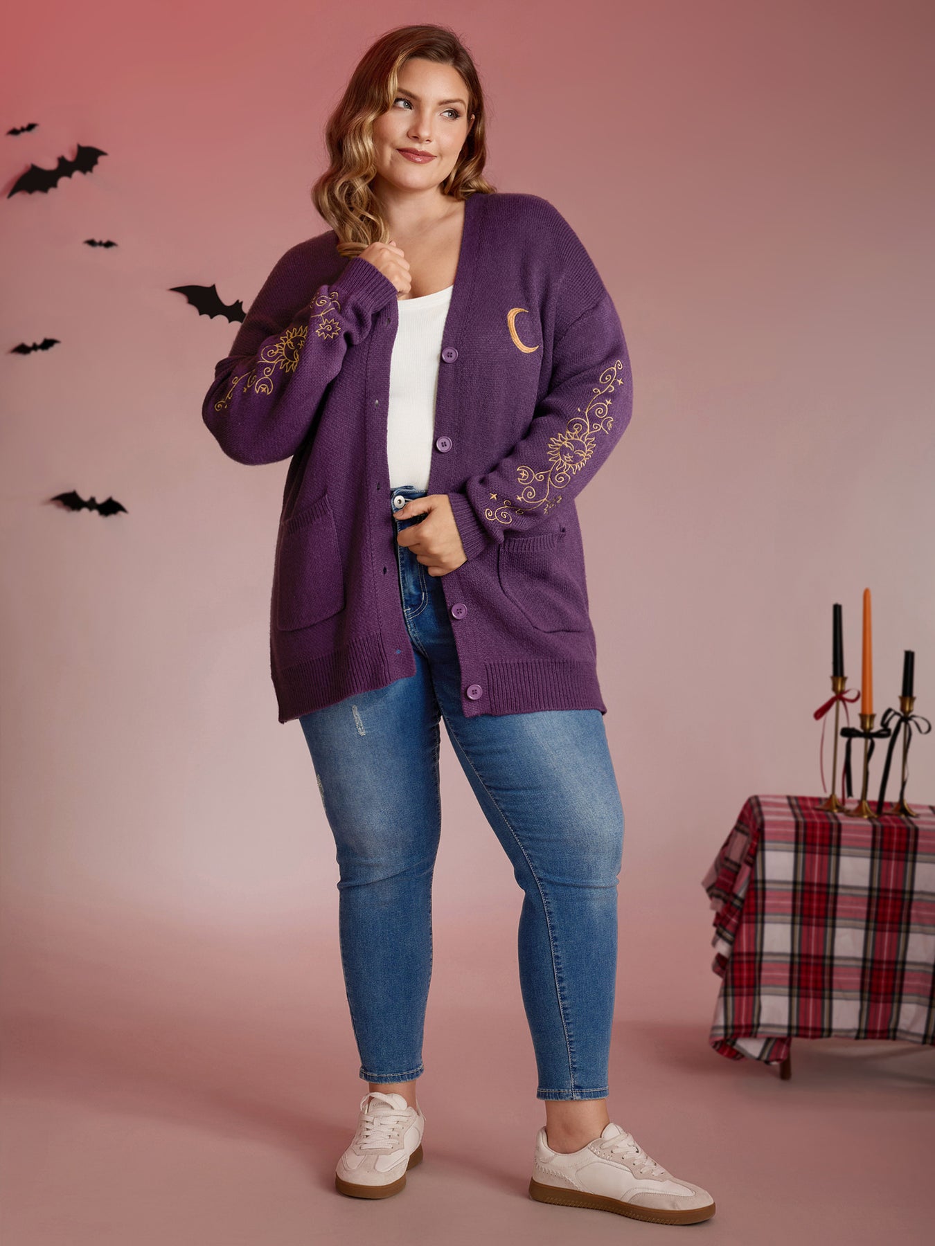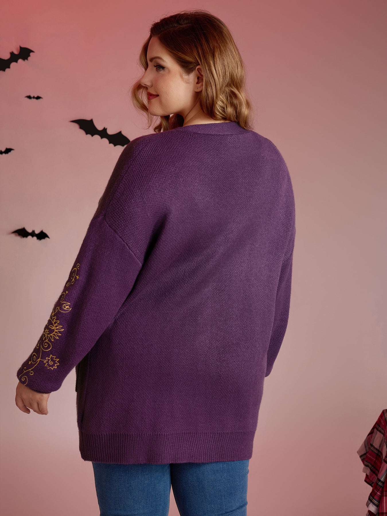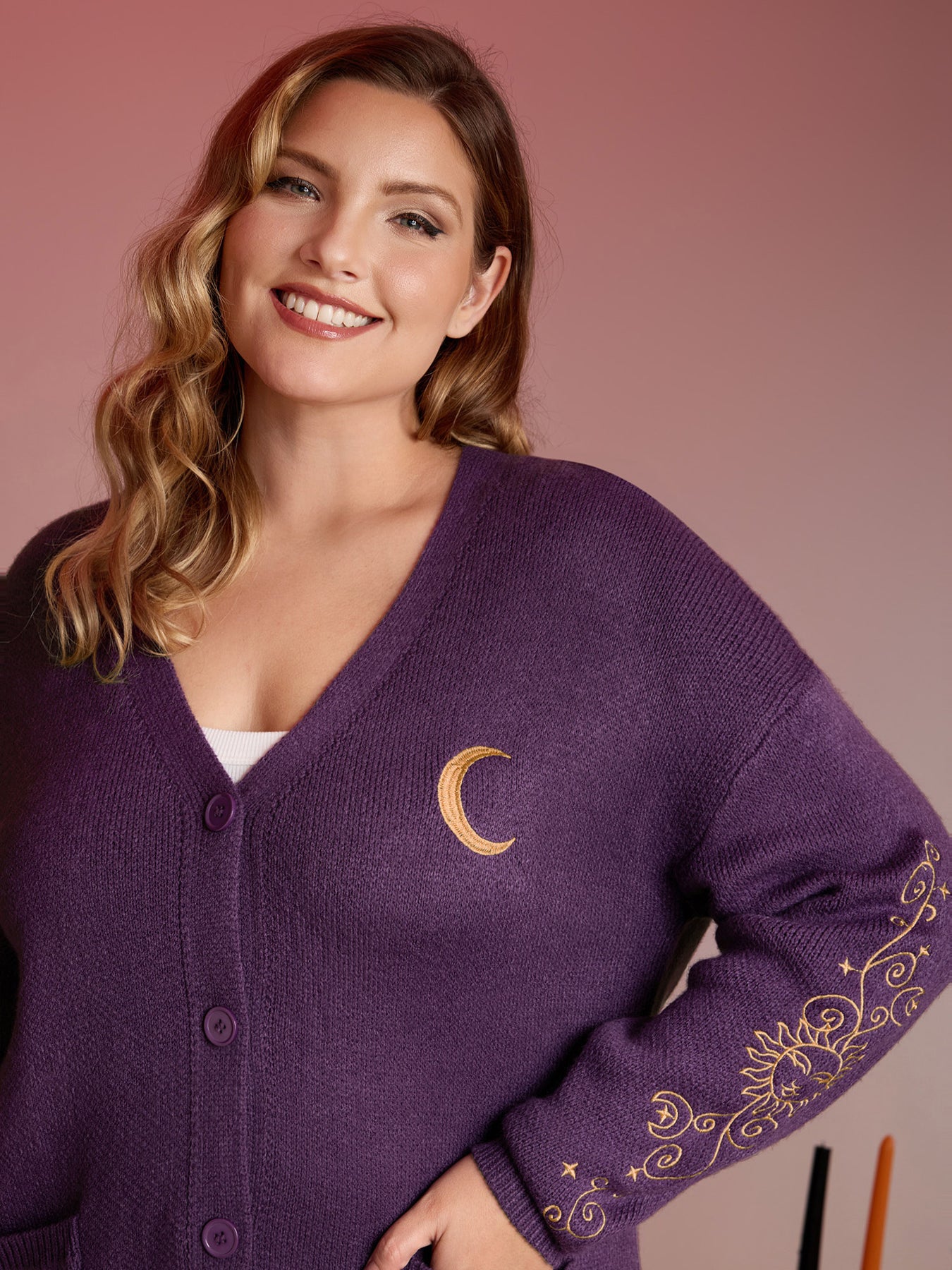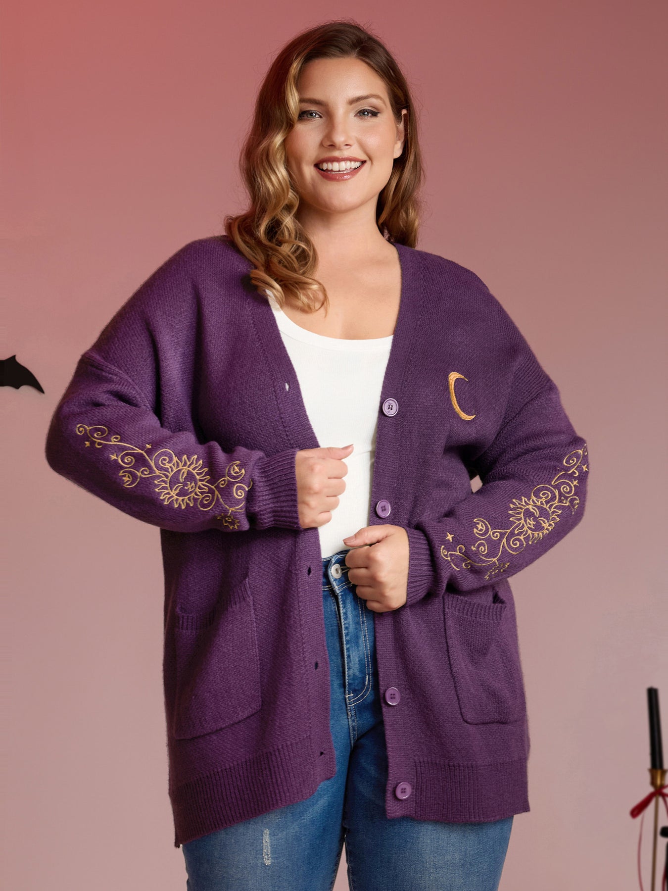Star Embroidery Button Pockets Knit Cardigan