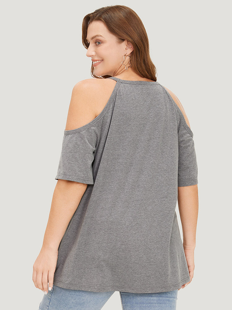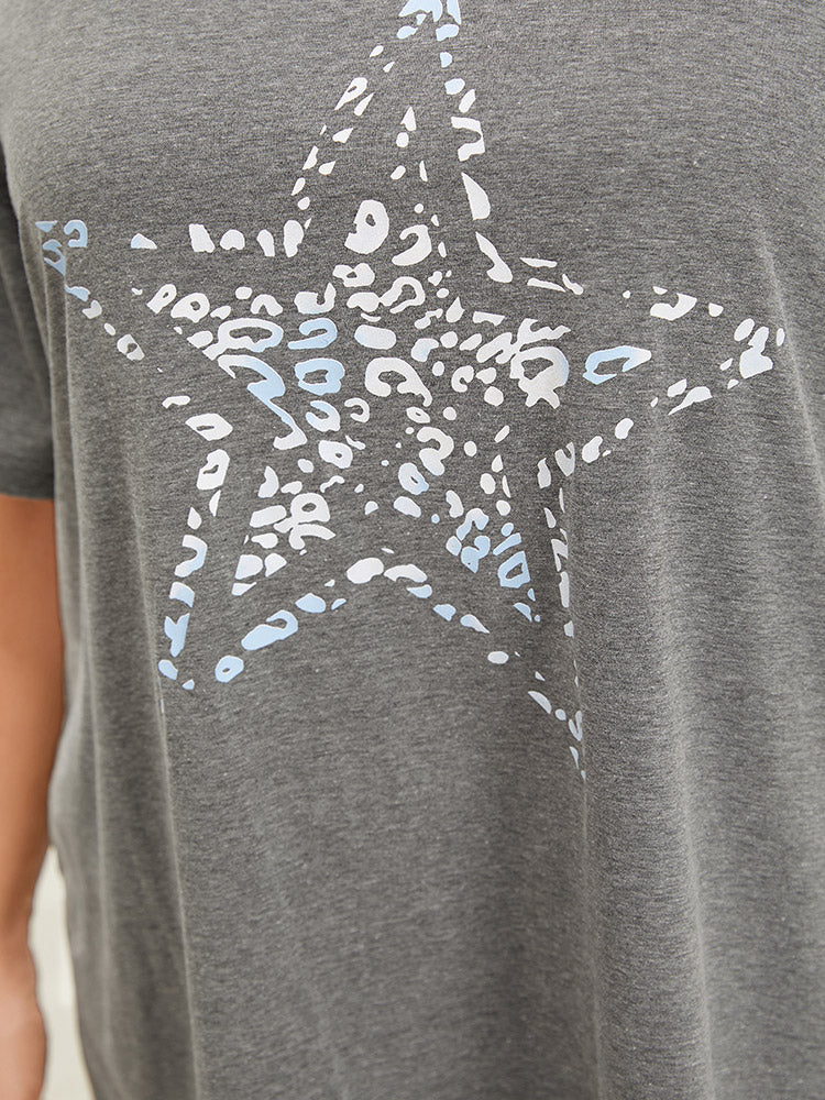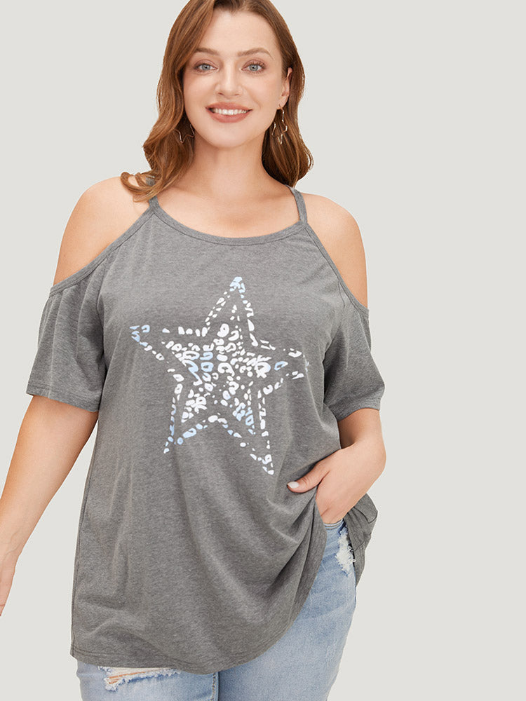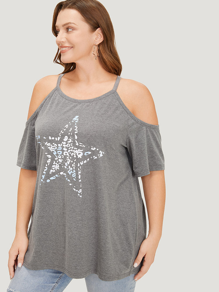 Star Leopard Cold Shoulder Heather T-shirt