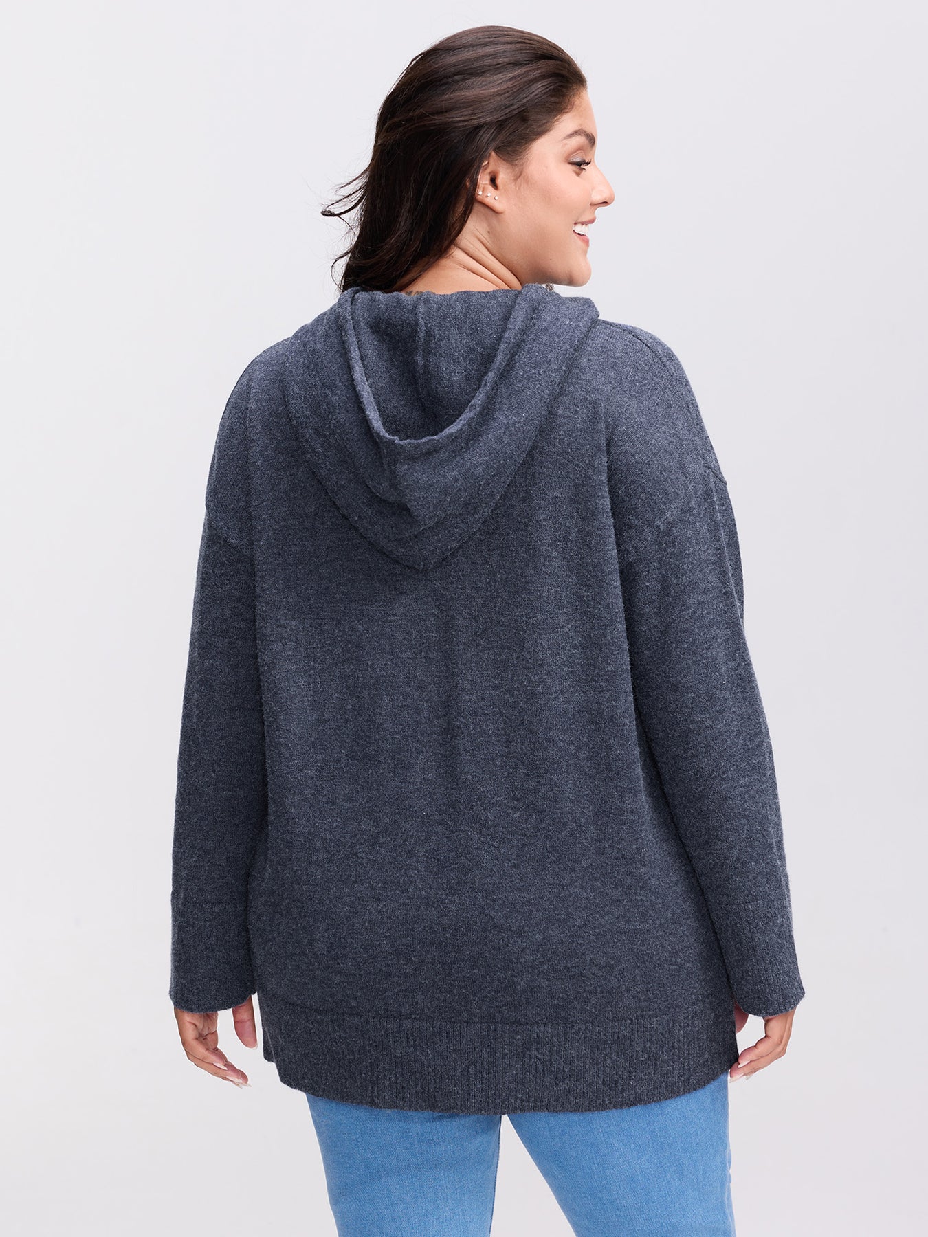 Straight-Sleeve Hooded Solid Pullover