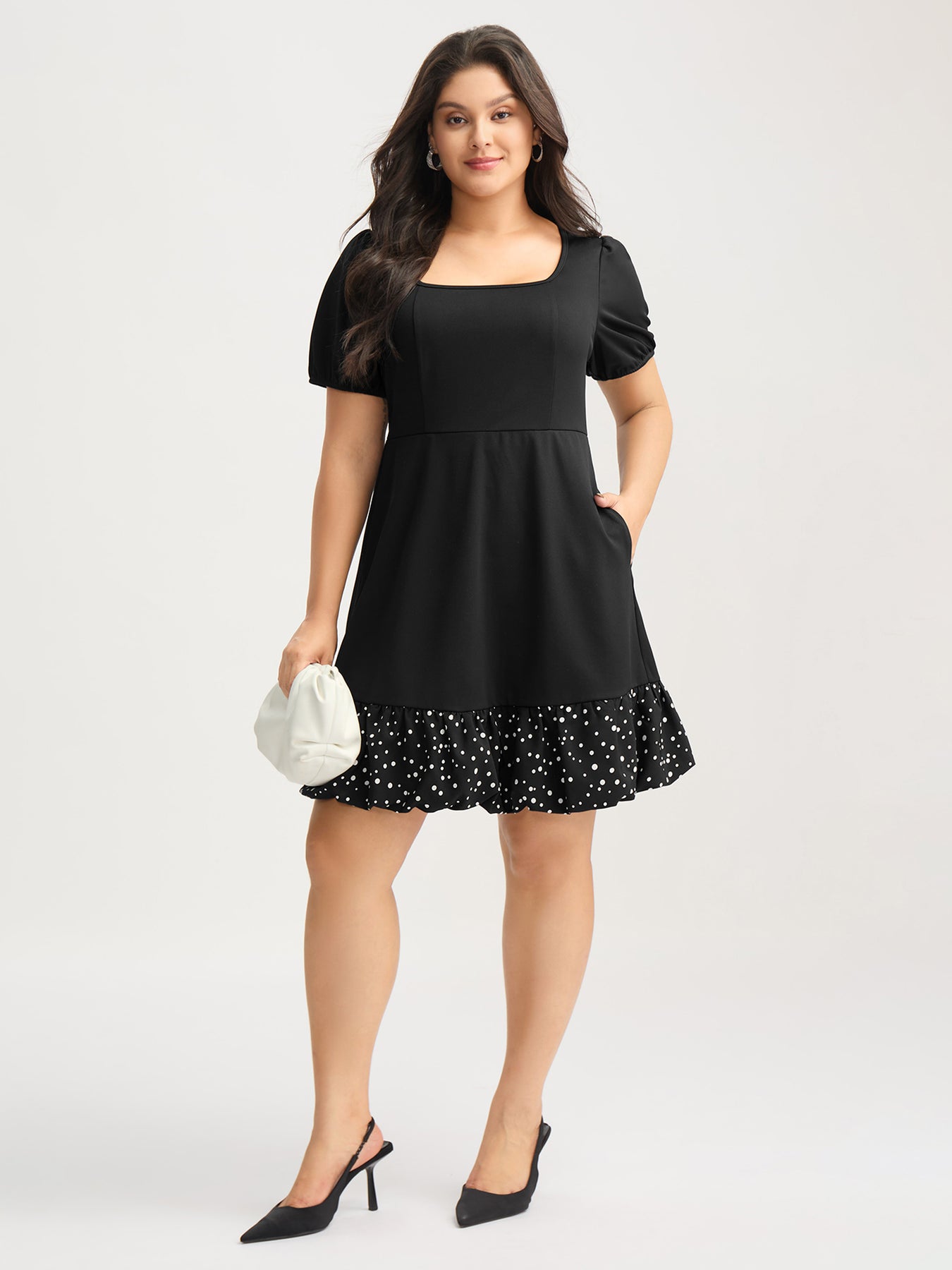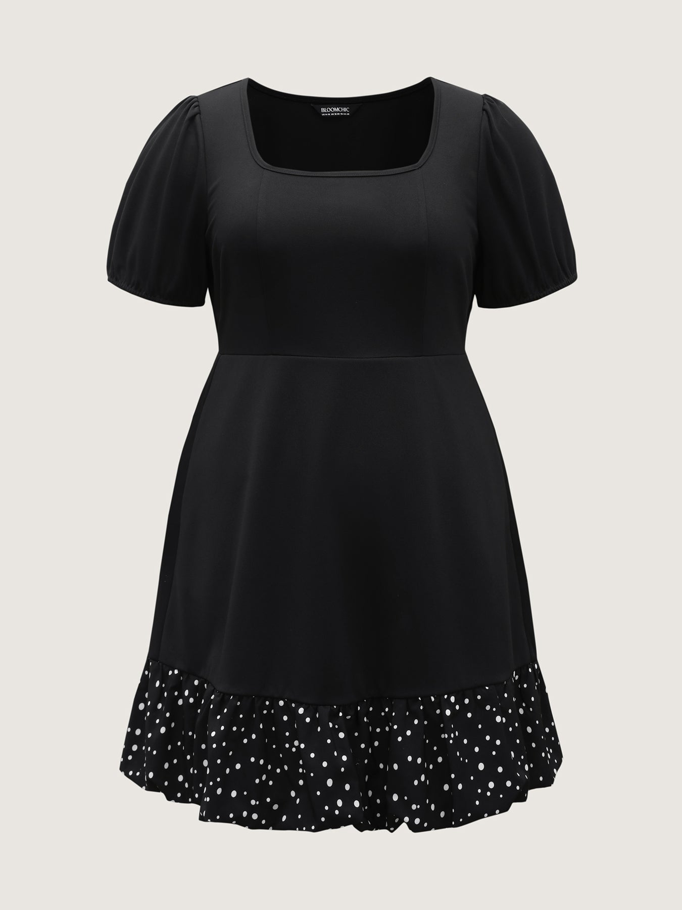 Stretchy Bubble Hem Polka Dots Midi Dress