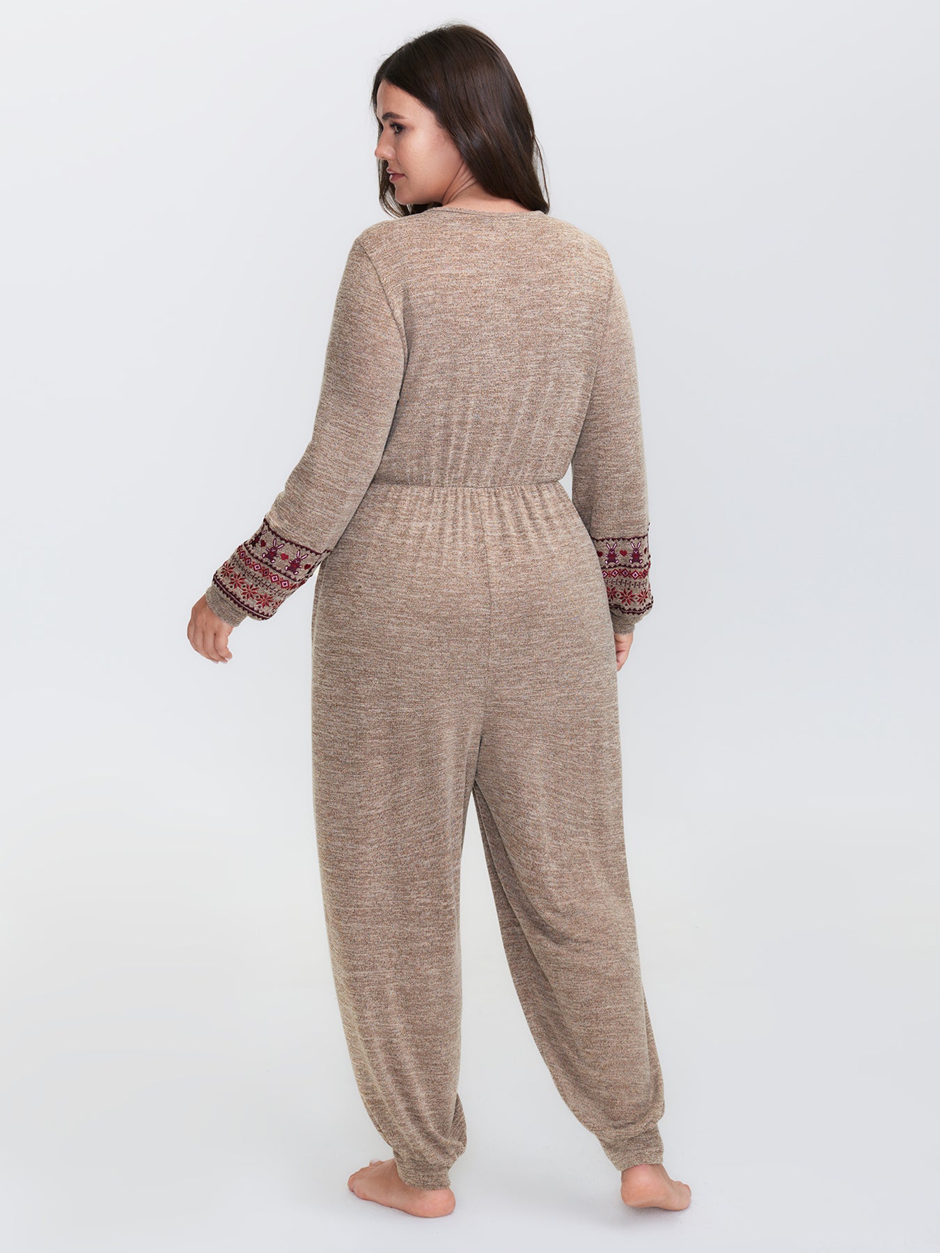 Stretchy Embroidery Pockets Drawstring Lounge Jumpsuit