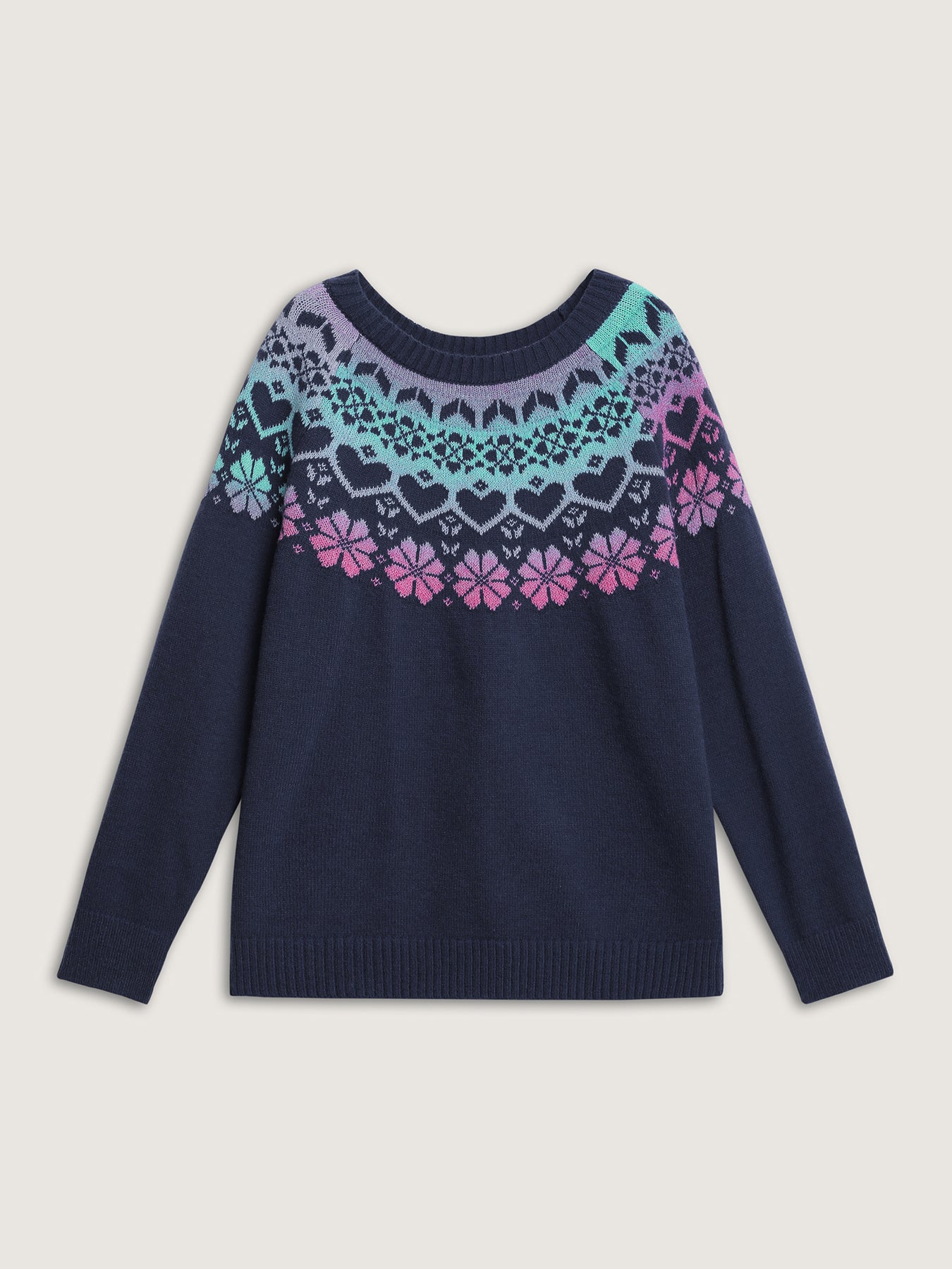 Stretchy Floral Color Gradient Jacquard Pullover