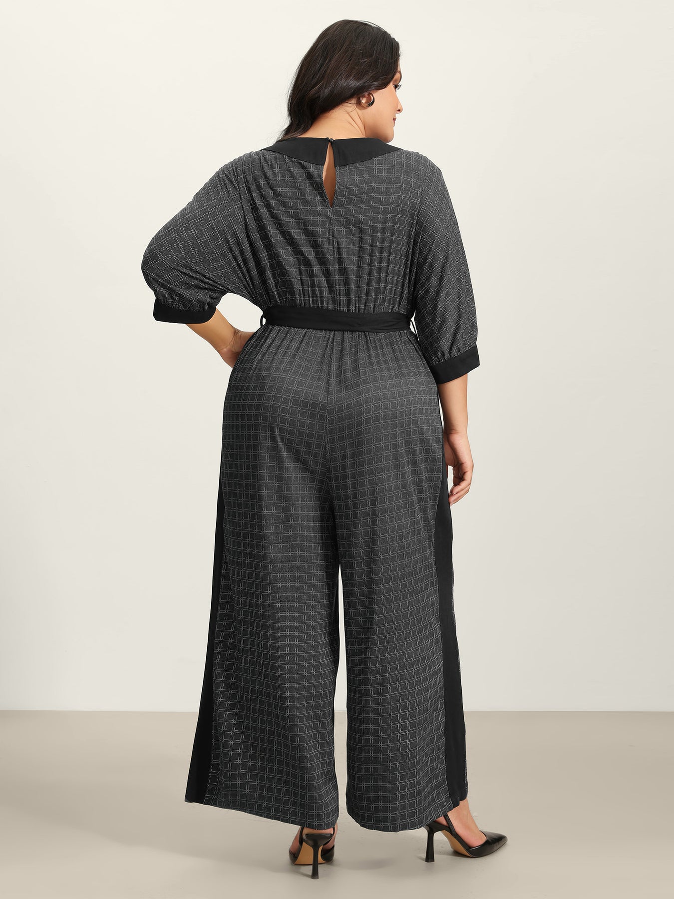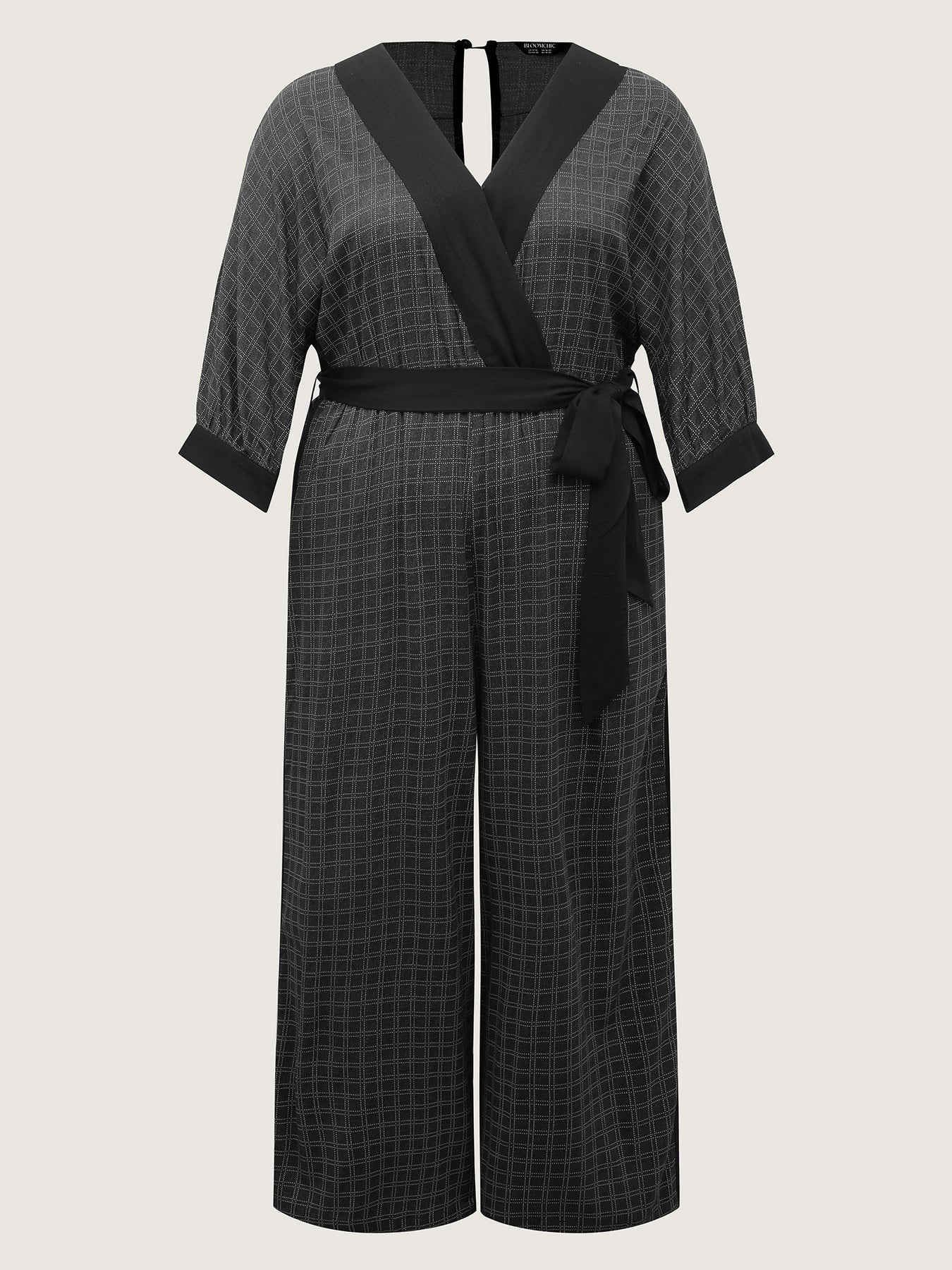Stretchy Rayon Plaid Pockets Belt Jumpsuit