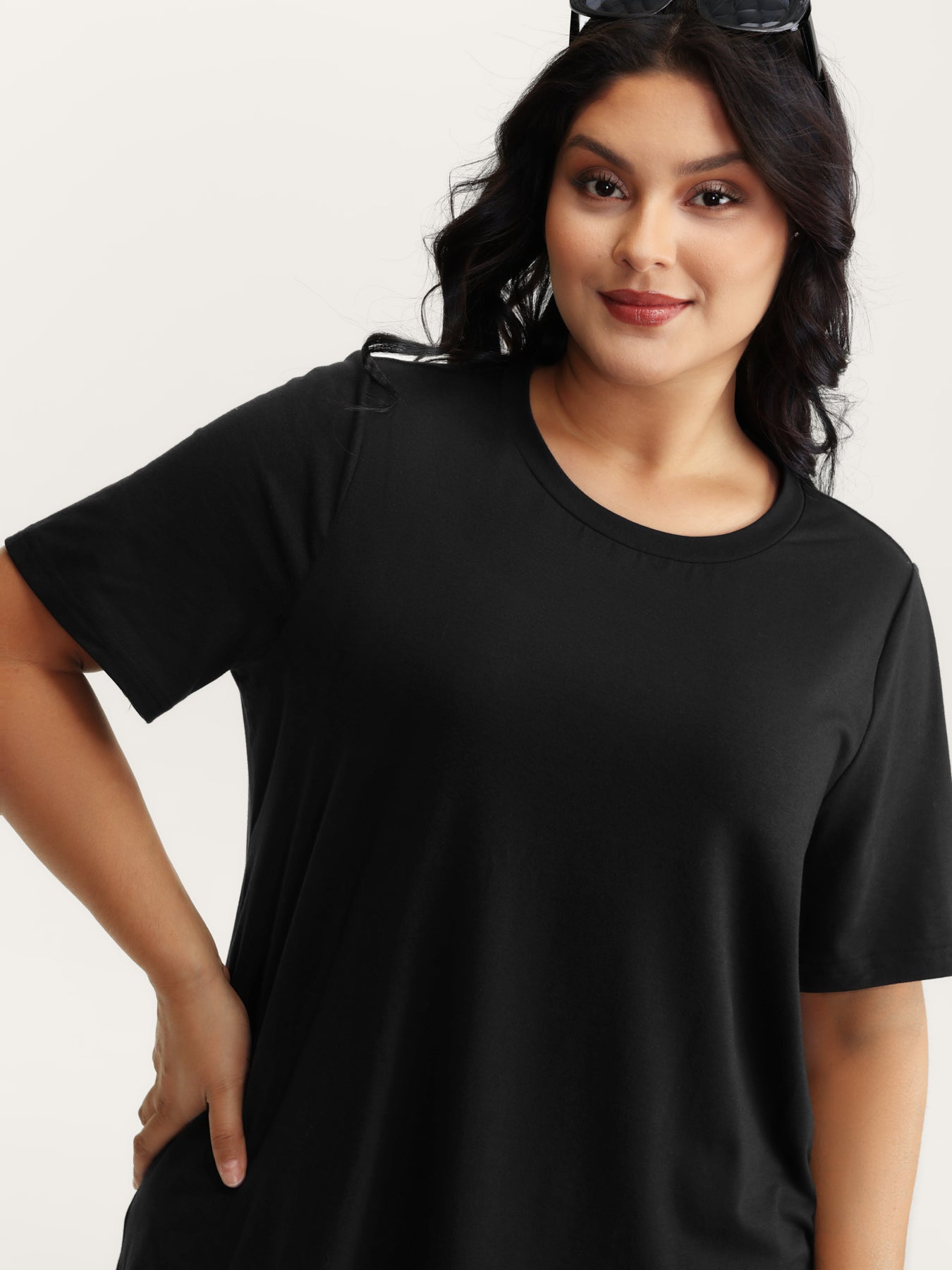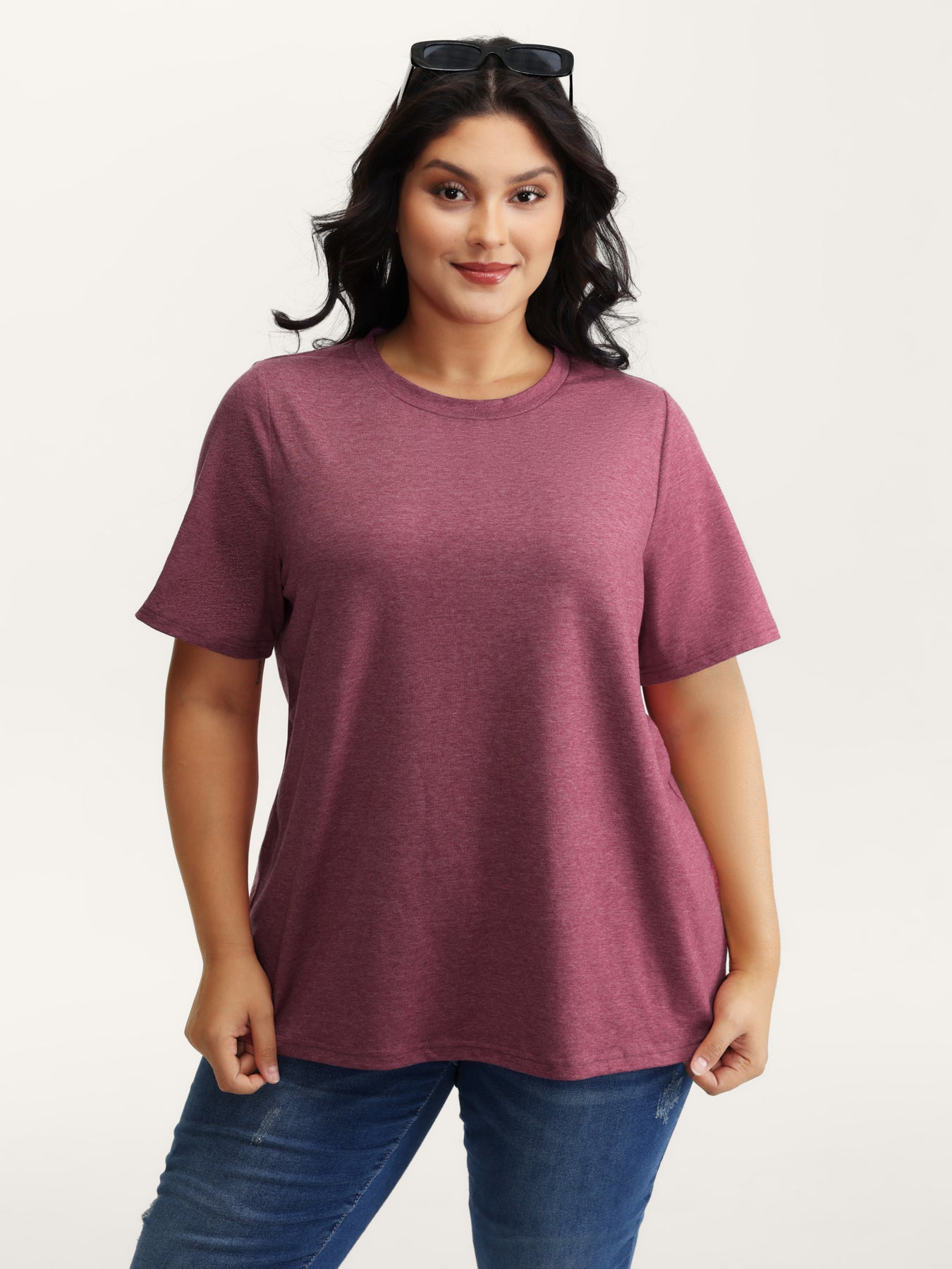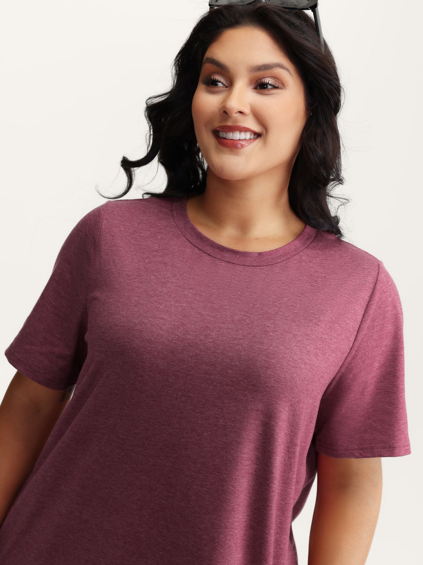 Stretchy Round Neck Solid T-Shirt