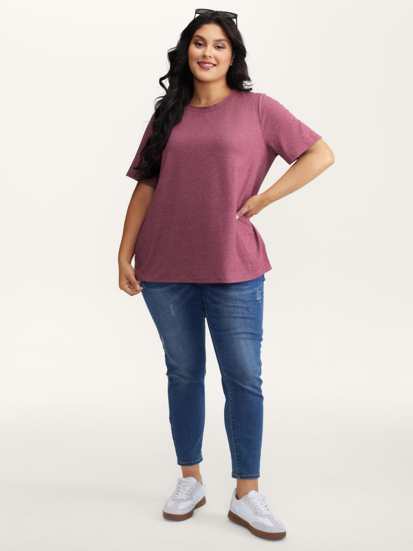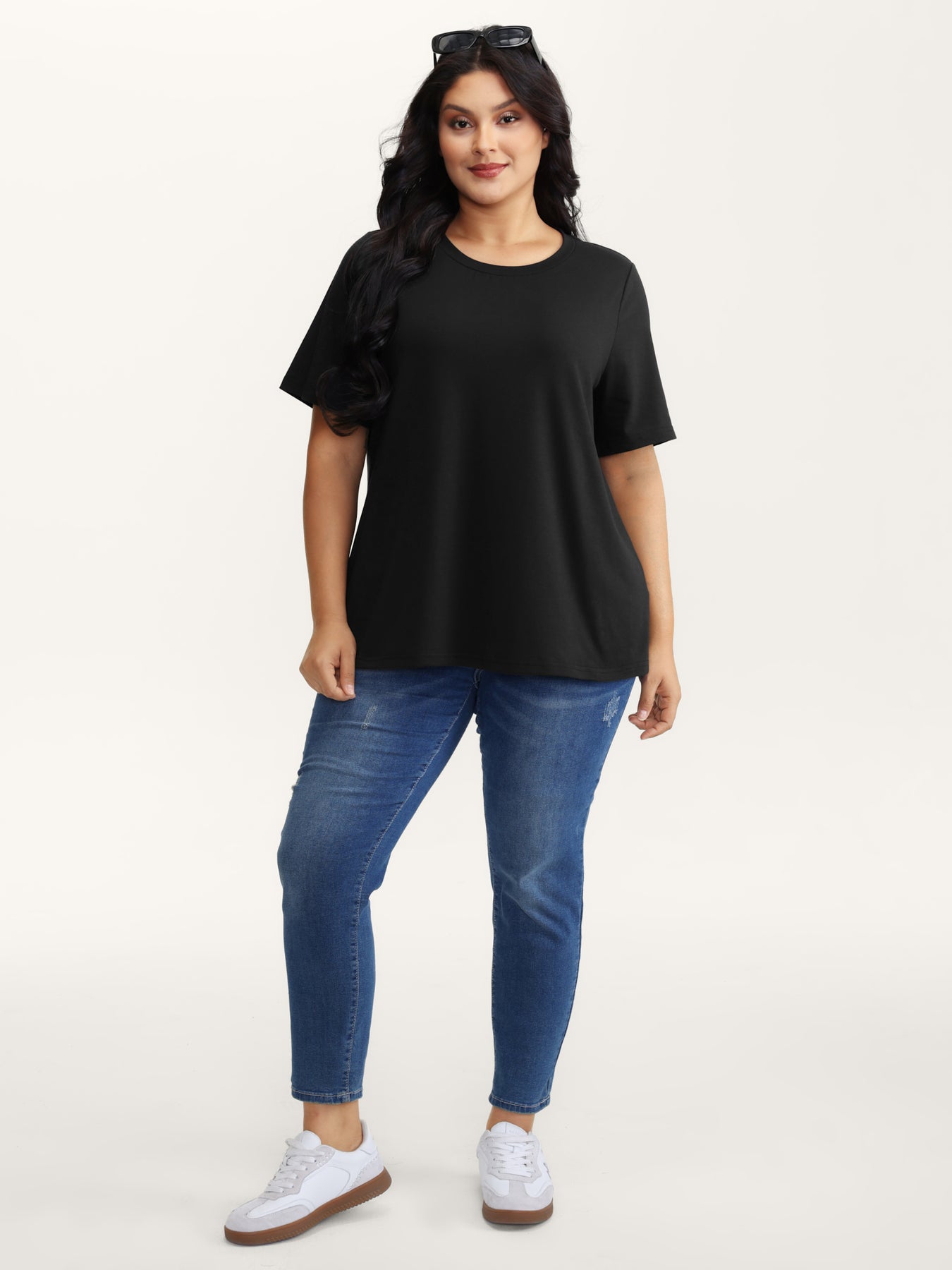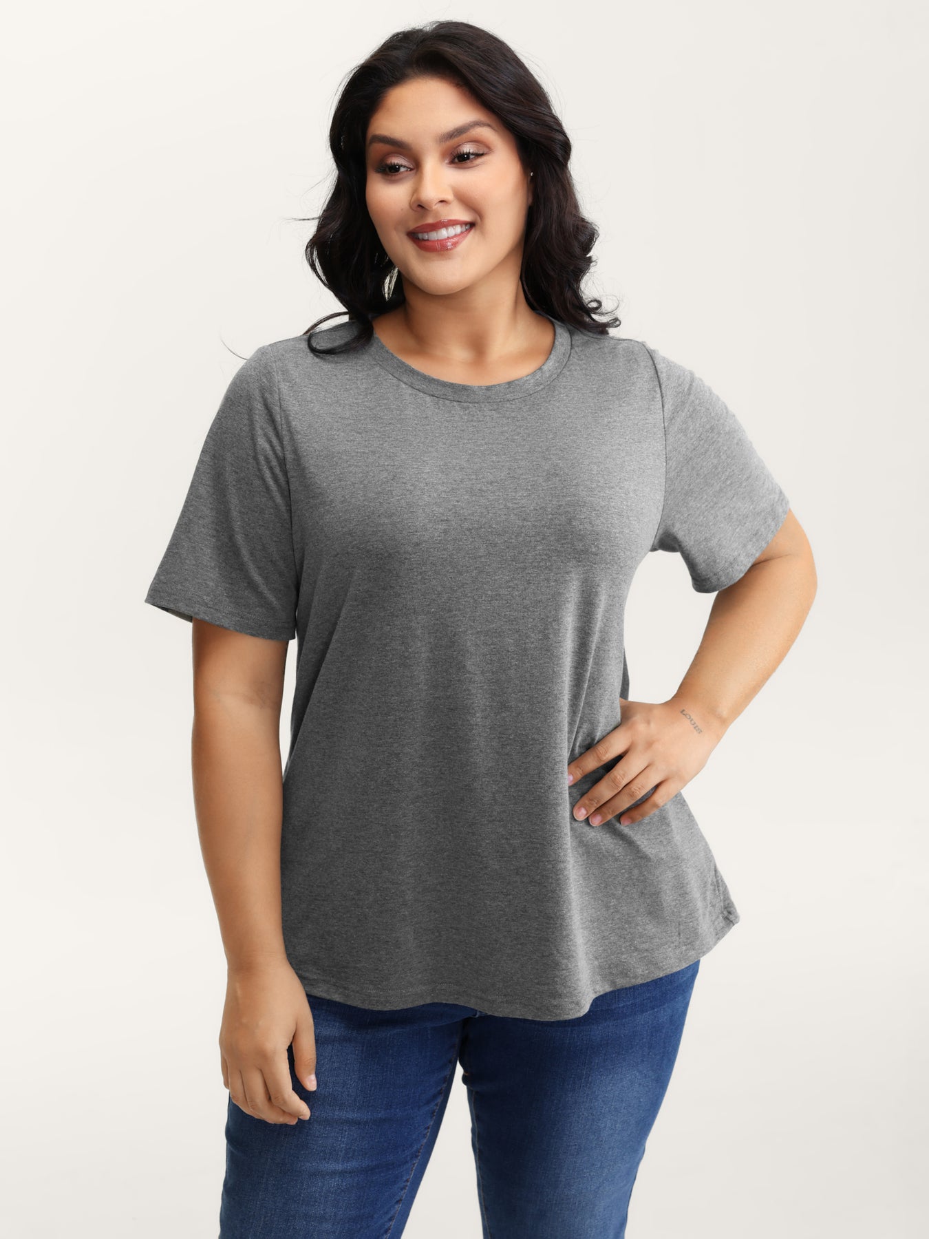 Stretchy Round Neck Solid T-Shirt