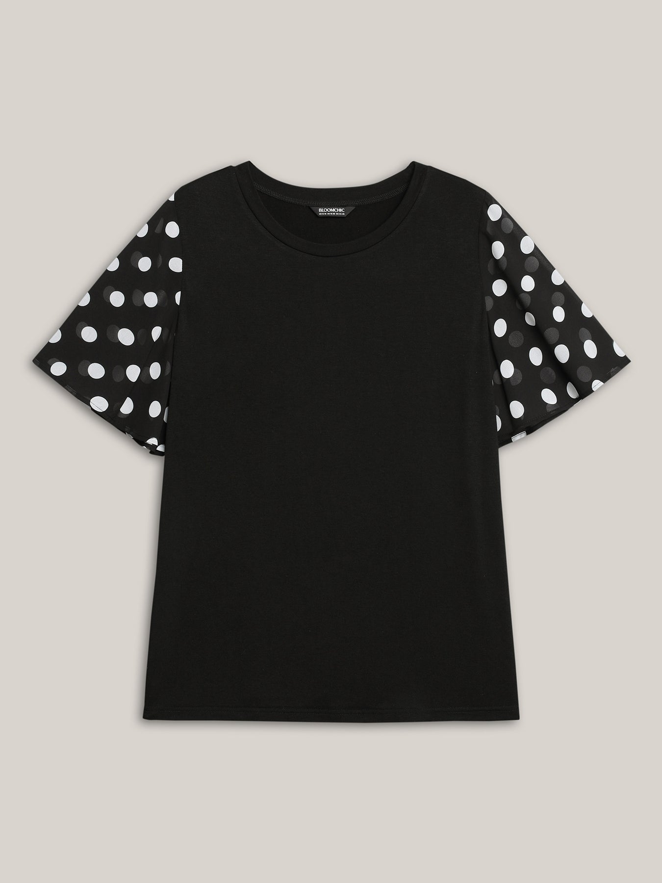 Stretchy Sheer Dot Sleeve Textured T-Shirt