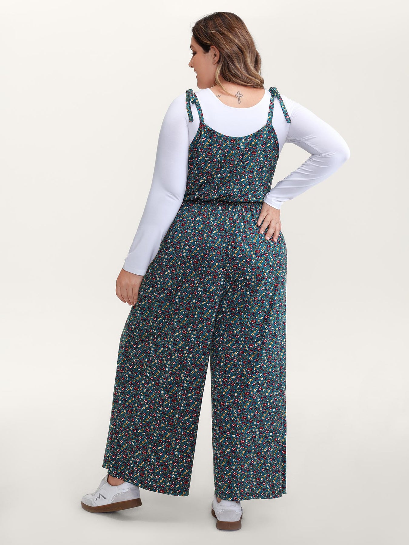 Stretchy Shoulder-Tie Floral Jumpsuit