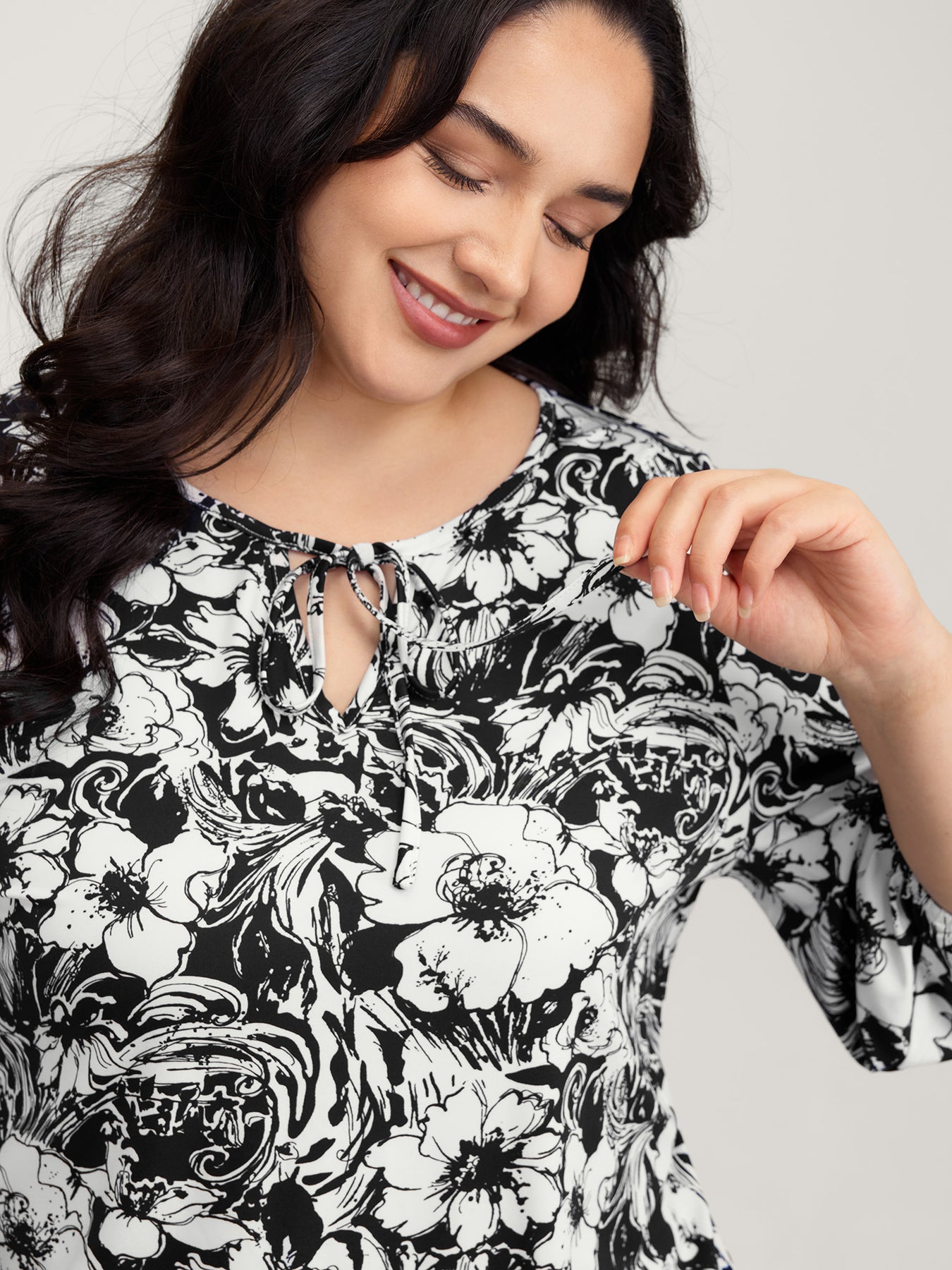 Stretchy Silhouette Flower Knit Top